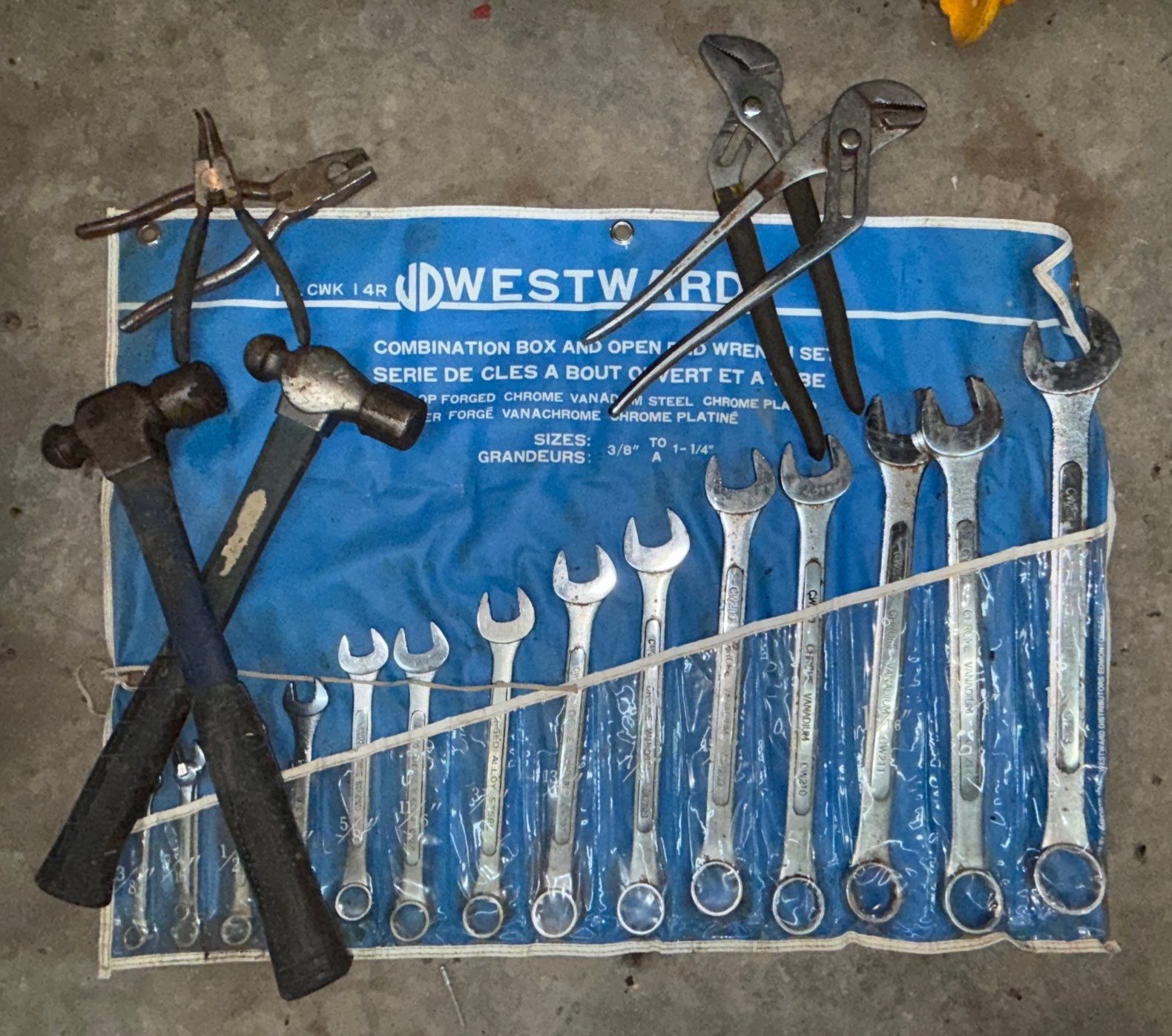 Westward Brand Combination Box & Open-End Wrenches, Two Hammers, Pliers & More