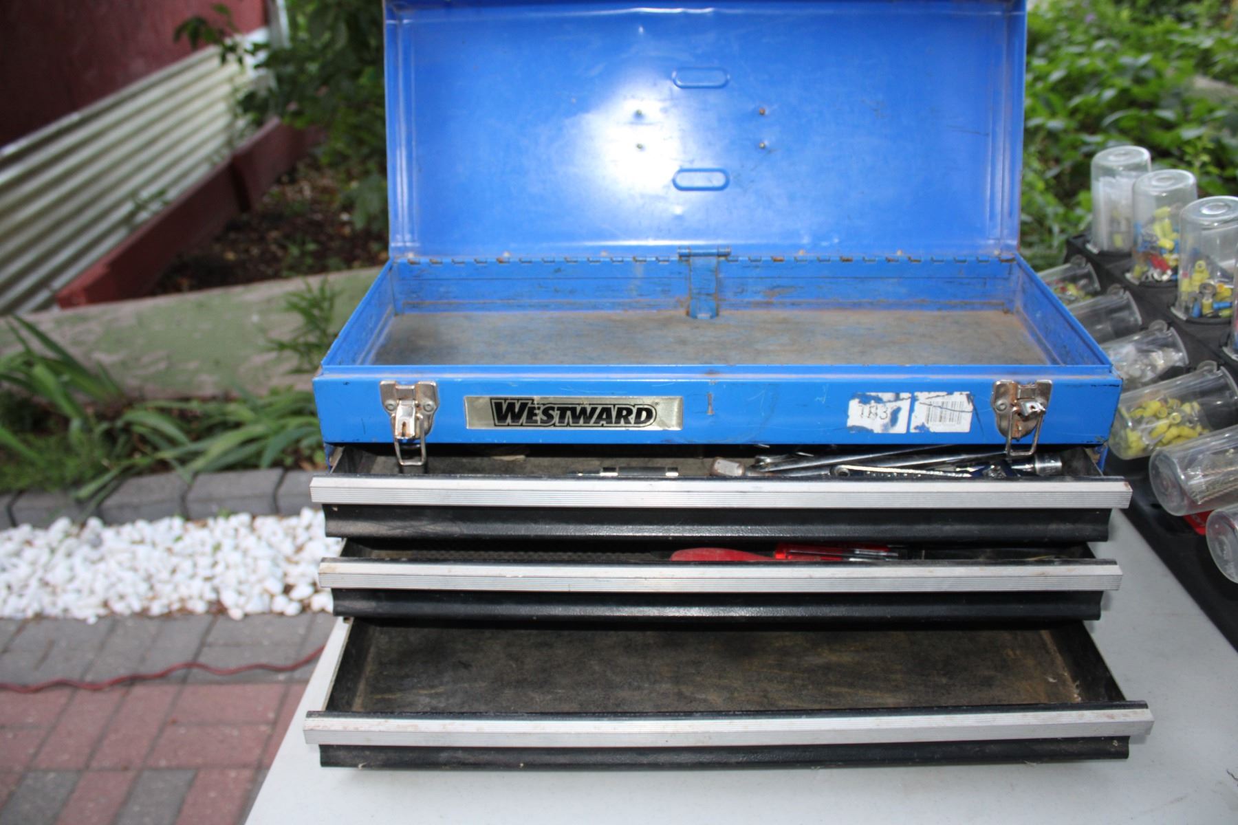 Westward toolbox with tools (21" L x 8 1/2" W x 11 1/4" T)
