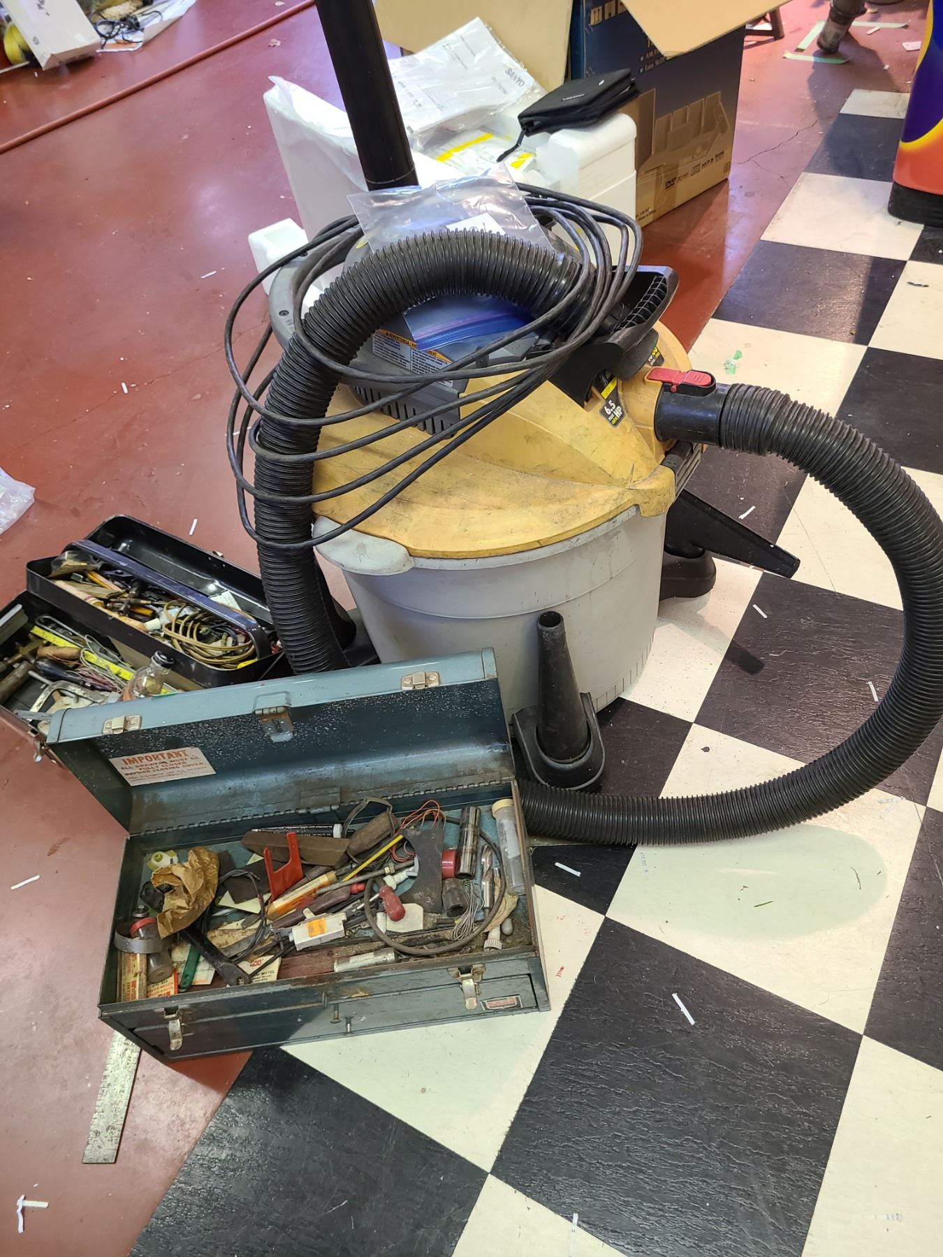 Large shop Vac, 2 metal tool boxes with contents. Pickup at 9am