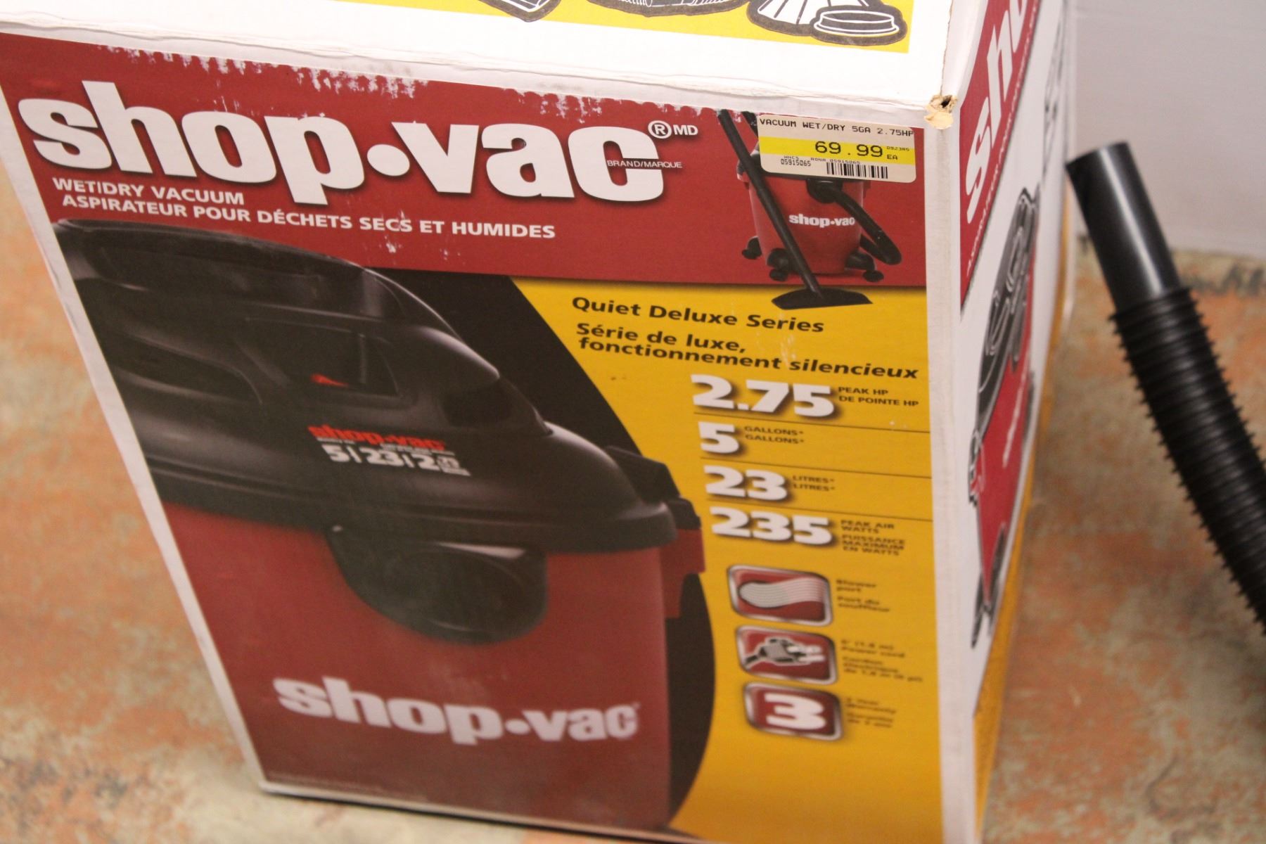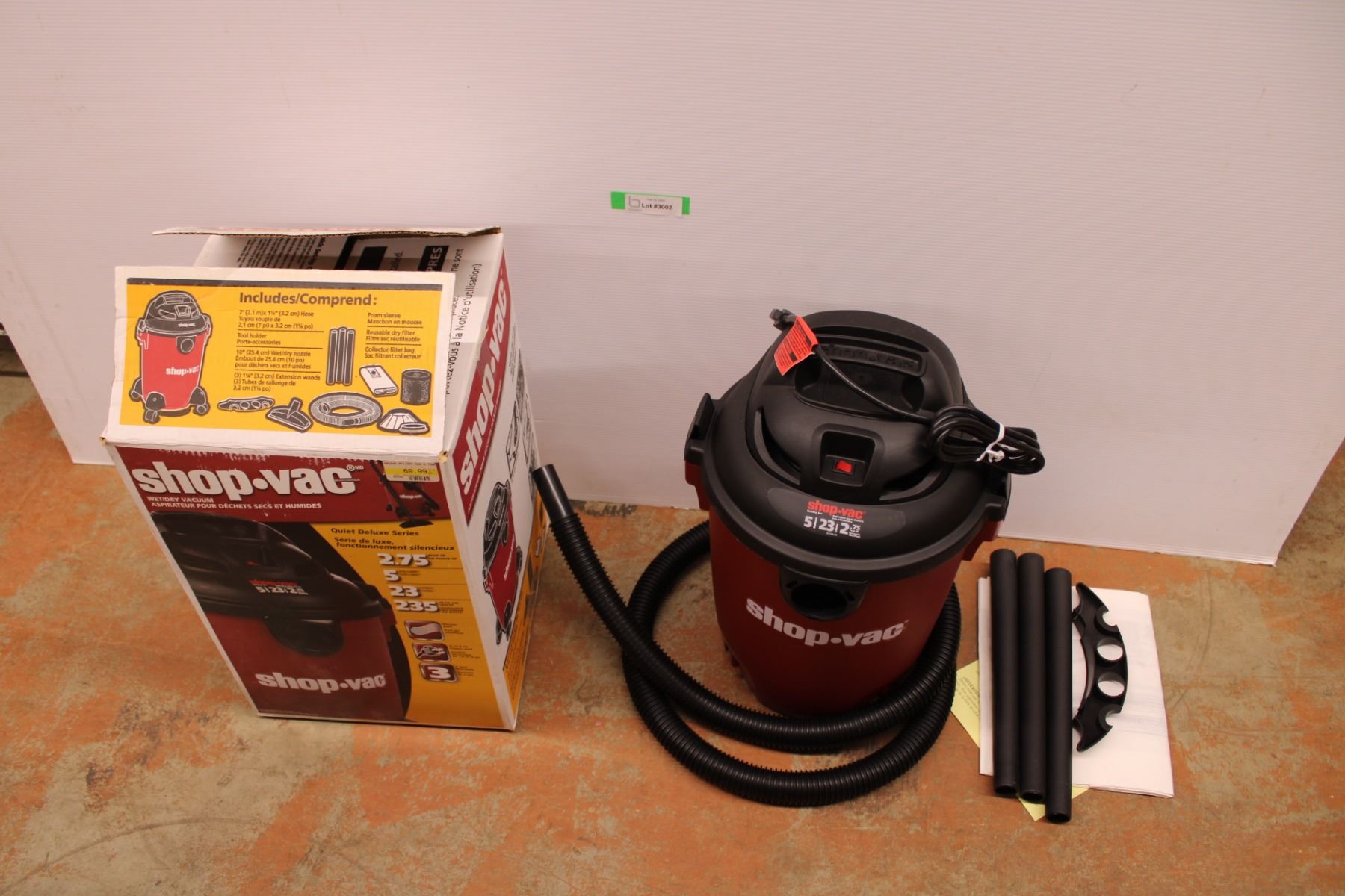 Wet/Dry Shop Vac w/ Accessories - 2.75 HP, Appears New w/Box, Tested, Works