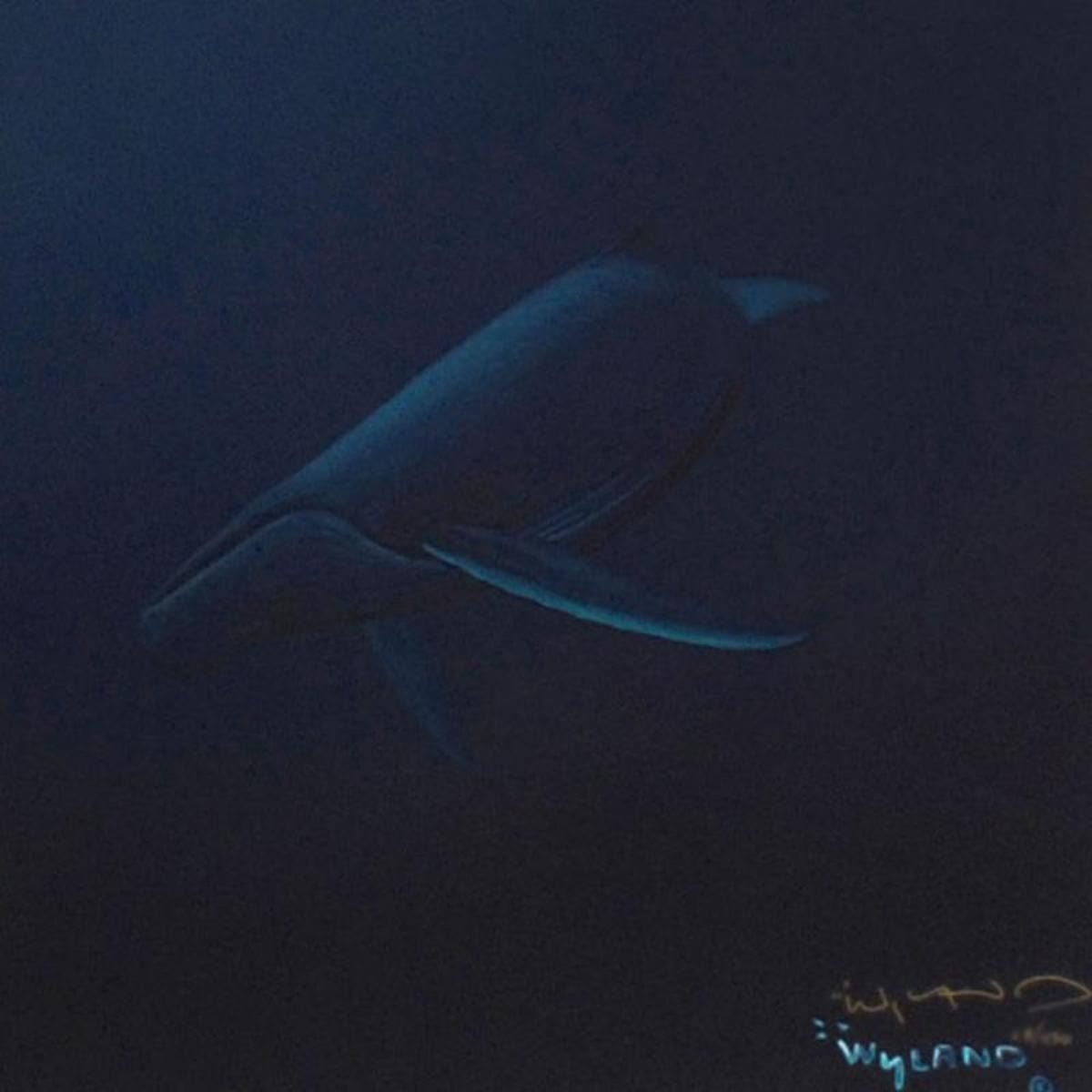 Whale Protection by Wyland. "Whale Protection" is a limited edition cibachrome, PP numbered and hand signed by Wyland. Includes Certificate of Authenticity and measures approximately 44" x 22" (image). Due to the nature of these pieces there may be some imperfections along the edges that would be concealed when framed and due to the glossy surface there may be some smudging in the signature and number area.