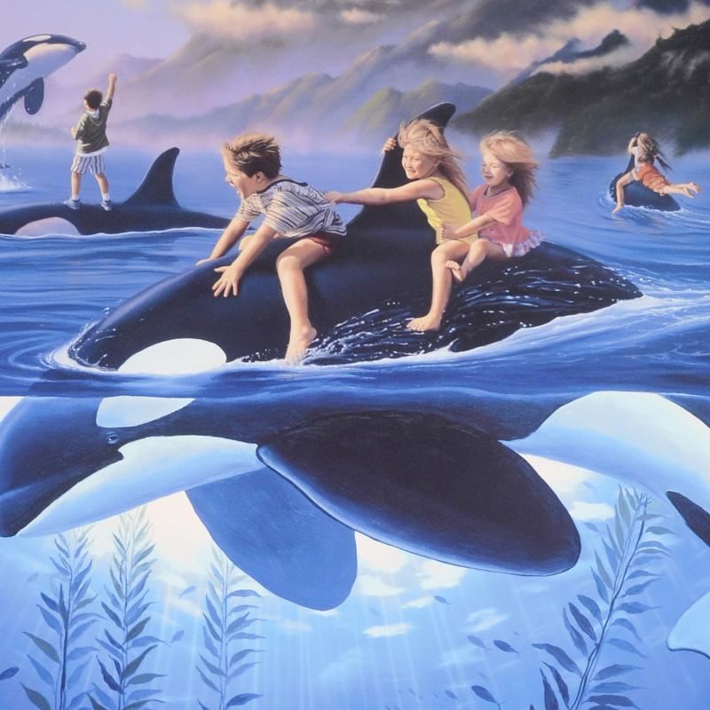 Journey into a world of lifelike imagery and captivating color with this breathtaking collaboration between artists Jim Warren and Wyland! "Whale Rides" is a limited edition lithograph on paper, numbered and hand signed by both Wyland and Jim Warren! Includes Certificate of Authenticity! Measures approx. 18" x 26" (with border), 16.5" x 22.5" (image).