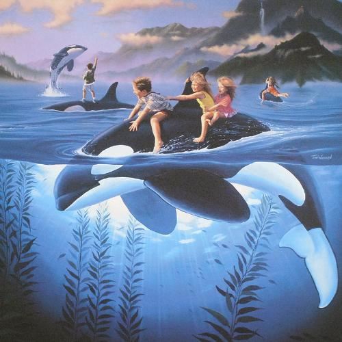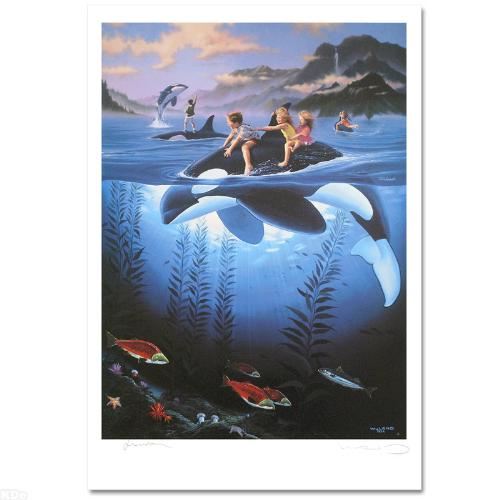 Whale Rides is a limited edition lithograph on paper, numbered and hand signed by Robert Wyland and Jim Warren! Includes Publisher's Certificate of Authenticity! Measures approx. 18 x 26 (border), 16.5 x 22.5 (image).