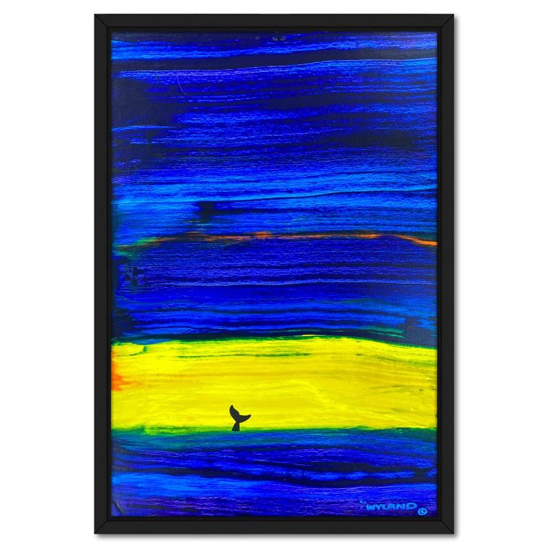 "Whale Tail" is an original acrylic painting on canvas by Wyland, hand signed by the artist. This piece comes custom framed. Includes Letter of Authenticity. Measures approx. 40" x 28" (frame), 38.5" x 26.5" (image). This item requires special handling and may have a longer than usual turnaround.