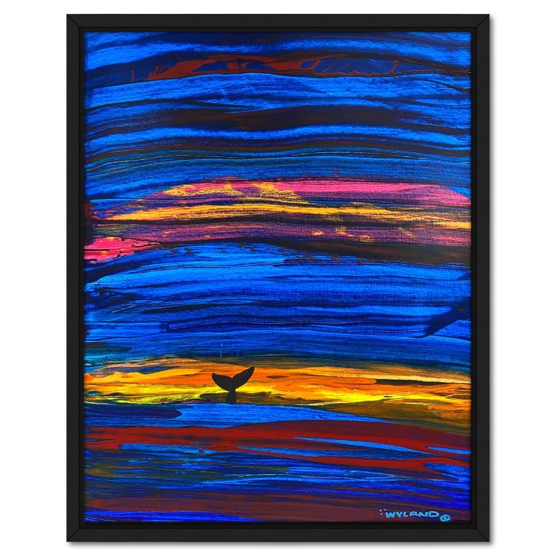 "Whale Tail"is an original acrylic painting on canvas by Wyland, hand signed by the artist. This piece comes custom framed. Includes Letter of Authenticity. Measures approx. 41.5" x 33" (frame), 38.5" x 30" (image). This item requires special handling and may have a longer than usual turnaround.