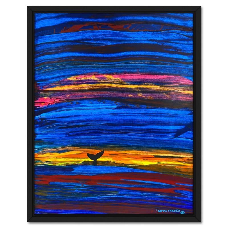 "Whale Tail"is an original acrylic painting on canvas by Wyland, hand signed by the artist. This piece comes custom framed. Includes Letter of Authenticity. Measures approx. 41.5" x 33" (frame), 38.5" x 30" (image). This item requires special handling and may have a longer than usual turnaround.