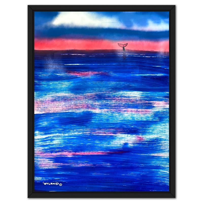 "Whale Tail"is an original acrylic painting on canvas by Wyland, hand signed by the artist. This piece comes custom framed. Includes Letter of Authenticity. Measures approx. 46" x 36" (frame), 43" x 33" (image). This item requires special handling and may have a longer than usual turnaround.