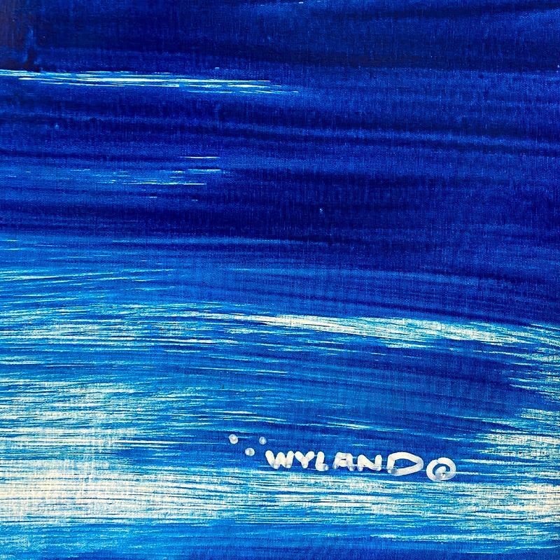 "Whale Tail" is an original acrylic painting on canvas by Wyland, hand signed by the artist. This piece comes custom framed. Includes Letter of Authenticity. Measures approx. 54" x 42" (frame), 51" x 39" (image). This item requires special handling and may have a longer than usual turnaround.