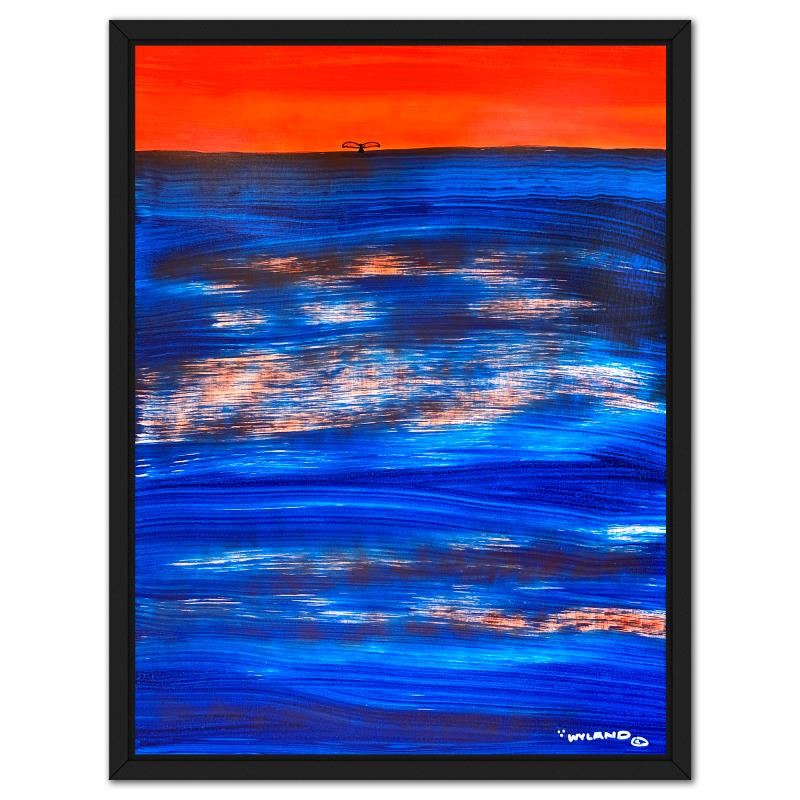 "Whale Tail"is an original acrylic painting on canvas by Wyland, hand signed by the artist. This piece comes custom framed. Includes Letter of Authenticity. Measures approx. 46" x 36" (frame), 43" x 33" (image). This item requires special handling and may have a longer than usual turnaround.