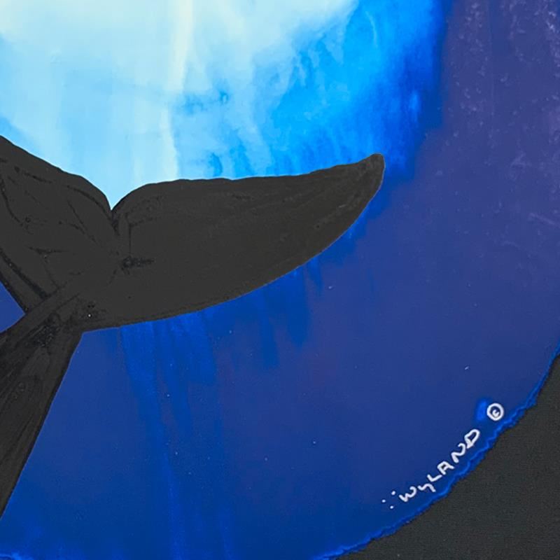 Whale Tail in the Light by Wyland Original. Please see photos and description for all available information. "Whale Tail in the Light" is an original painting, watercolor on deckle edge paper by Wyland. Hand signed by the artist, the piece comes custom framed and with a letter of authenticity. Measures approximately 30" x 30" (framed), 19.5" x 19.5" (image).