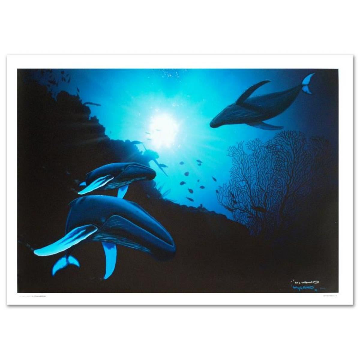 Whale Vision by Wyland. Wyland's true love for nature is so clearly conveyed in each of his brilliantly detailed works. "Whale Vision" is a limited edition giclee on canvas, numbered and hand signed by Wyland! Includes Certificate of Authenticity! Measures approx. 42" x 30" (image).