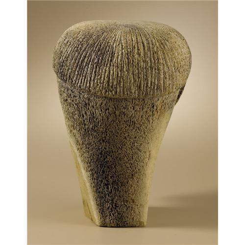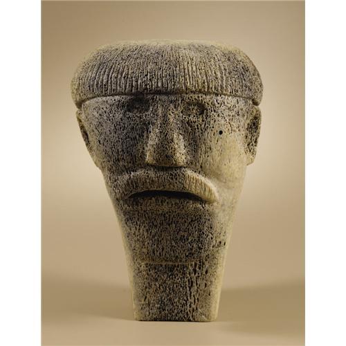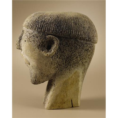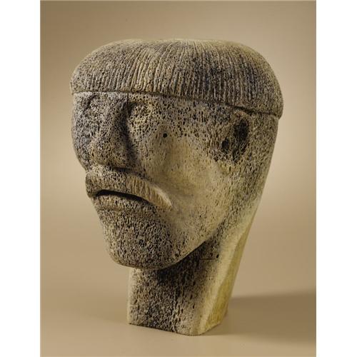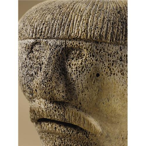 <B>Whalebone Carving - Head of an Inuit Man</B></I><BR>Circa 1968<BR>Height 10 in.<BR><BR>Beginning in the 1960s the Canadian government assisted with programs to benefit the native peoples of the Northwest Territories and Arctic. They helped in the establishment of artist cooperatives in the north and the marketing of prints, soapstone sculptures, and whalebone carvings in the larger cities of the southern provinces. The success of these endeavors continues to the present. This untitled sculpture is carved from weathered whalebone by Cedric, an Inuit artist.<BR><BR>Provenance<BR>Eskimo Fine Arts, Ottawa, Canada, 1968.<BR>Amon Carter Museum, Fort Worth, Texas.<BR><BR>