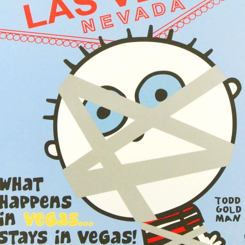 ADD THE IRREVERENT ARTWORK OF WORLD-RENOWNED ARTIST TODD GOLDMAN TO YOUR COLLECTION! Pop artist Todd Goldman is known all across the globe for his whip-smart and wickedly funny puns and pictures! "What Happens in Vegas..." is a fine art litho poster hand signed by Todd. Measures approx. 24" x 36" (poster).