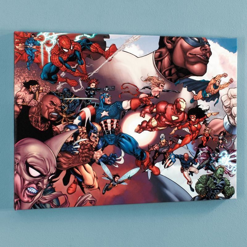 A piece of comic book history, this limited edition, from original art by Harvey Tolibao, depicts classic Marvel characters such as Iron Man, Wolverine, Spider-Man, Captain America, and many others. Harvey Tolibao earned his first big shot with Marvel in 2007 by doing the Iron Man Annual. He has since worked on many Marvel franchises, including The Avengers and X-Men. "What If? Civil War #1" is a limited edition giclee on canvas by Harvey Tolibao presented by Marvel Comics! This piece comes gallery wrapped. Includes Certificate of Authenticity! Measures approx. 24" x 18" (image).