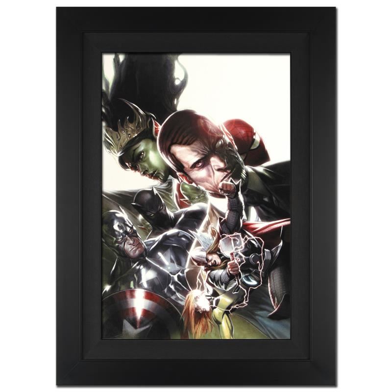A piece of comic book history, this limited edition, from original art by Leinil Francis Yu, depicts the classic characters Spider-Man, Captain America, Black Panther and Norman Osborn. After winning the Wizard's Drawing Board Contest, Marvel Comics hired Leinil Francis Yu to work on the Wolverine series. After his run on Wolverine, he moved on to work on Marvel's core X-Men title in 2000. Yu continued to work on other Marvel titles such as Fantastic Four, Ultimate Wolverine vs. Hulk and New Avengers. "What If? Secret Invasion #7" is an extremely limited edition giclee on canvas by Leinil Francis Yu presented by Marvel Comics, hand signed by the great Stan Lee and numbered out of only 10! This piece comes custom framed and ready to hang. Includes Certificate of Authenticity! Measures approx. 25" x 34" (with frame), 18" x 27" (image).