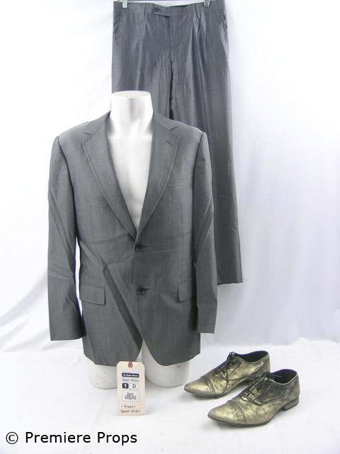 What Just Happened - Sean Penn's screen worn grey sharkskin silk/wool "Dolce & Gabanna" single breasted 2 button 2 piece suit, white cotton "Joseph & Feiss" l/s button up shirt, gold leather w/ black wash "Aldo" lace up dress shoes. Includes wardrobe tag!