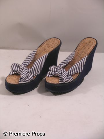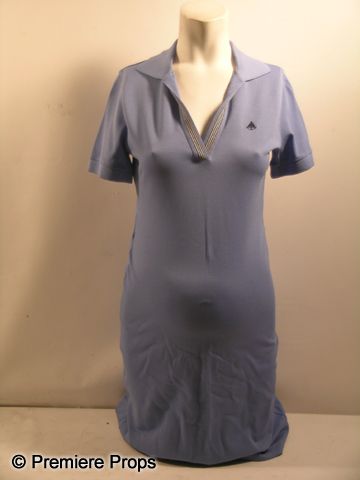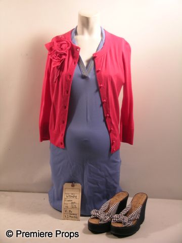 From 2012's romantic-comedy 'What to Expect When You're Expecting,' this is Wendy's (Elizabeth Banks) screen worn, hero wardrobe. Costume is comprised of a raspberry pink cardigan sweater with a cloth rose on right shoulder, and 'Kate Spade' label (size XS), a short sleeve, periwinkle colored polo dress with 'Brooks Brothers' label (size XS), a 'six month' pregnant belly body appliance, and a pair of navy canvas wedge shoes with 'Juicy Couture' label. (size 7) Includes wardrobe tag!