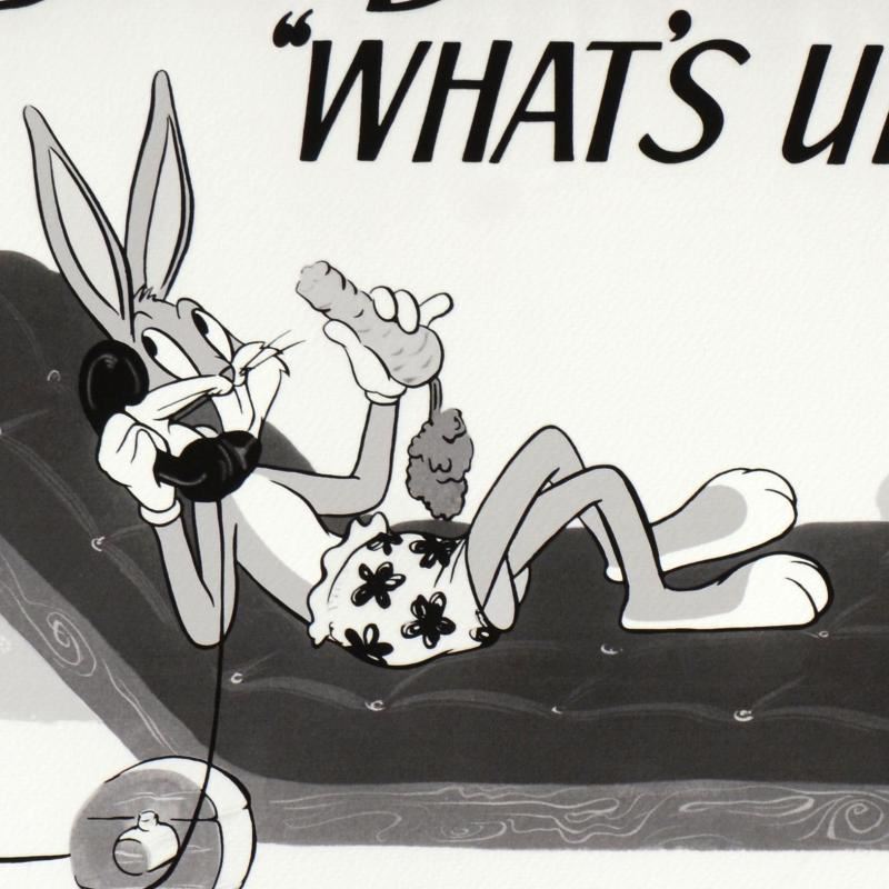 "What's Up Doc - Bugs Bunny" is a limited edition giclee on paper from Warner Bros., numbered with hologram seal of Authenticity. This image was originally used as a "lobby card" displayed in theater lobbies to publicize animated shorts. Also, includes Certificate of Authenticity! Measures approx. 20" x 16" (with border), 16" x 12" (image).
