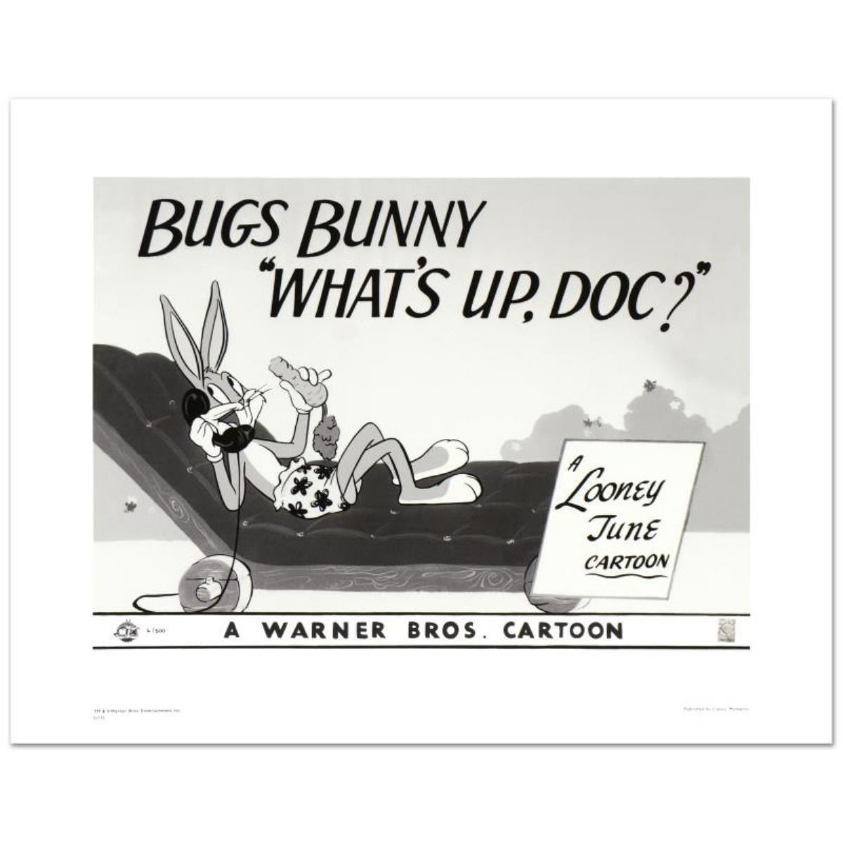 "What's Up Doc - Bugs Bunny" is a limited edition giclee on paper from Warner Bros., numbered with hologram seal of Authenticity. This image was originally used as a "lobby card" displayed in theater lobbies to publicize animated shorts. Also, includes Certificate of Authenticity! Measures approx. 20" x 16" (with border), 16" x 12" (image).