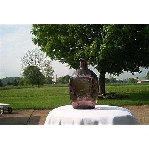 Featuring a Purple flask bottle with the embossed head of Washington and around the edge of the flask in embossed letters: The Father of His Country. Smooth Pontil-Wheaton, N.J. and Nuline, N.J. Rolled lip. 8 1/2 inches tall. Excellent Condition.