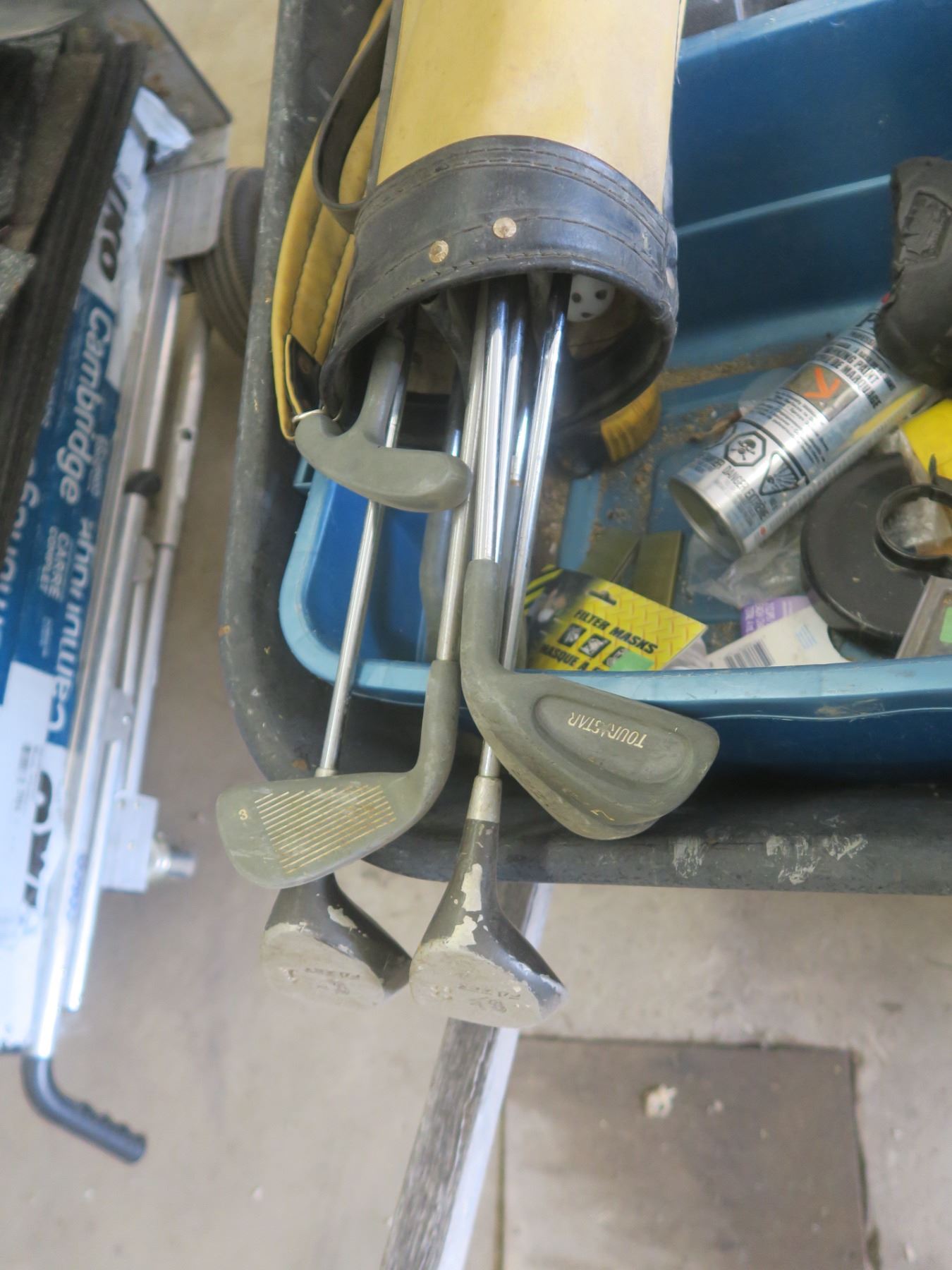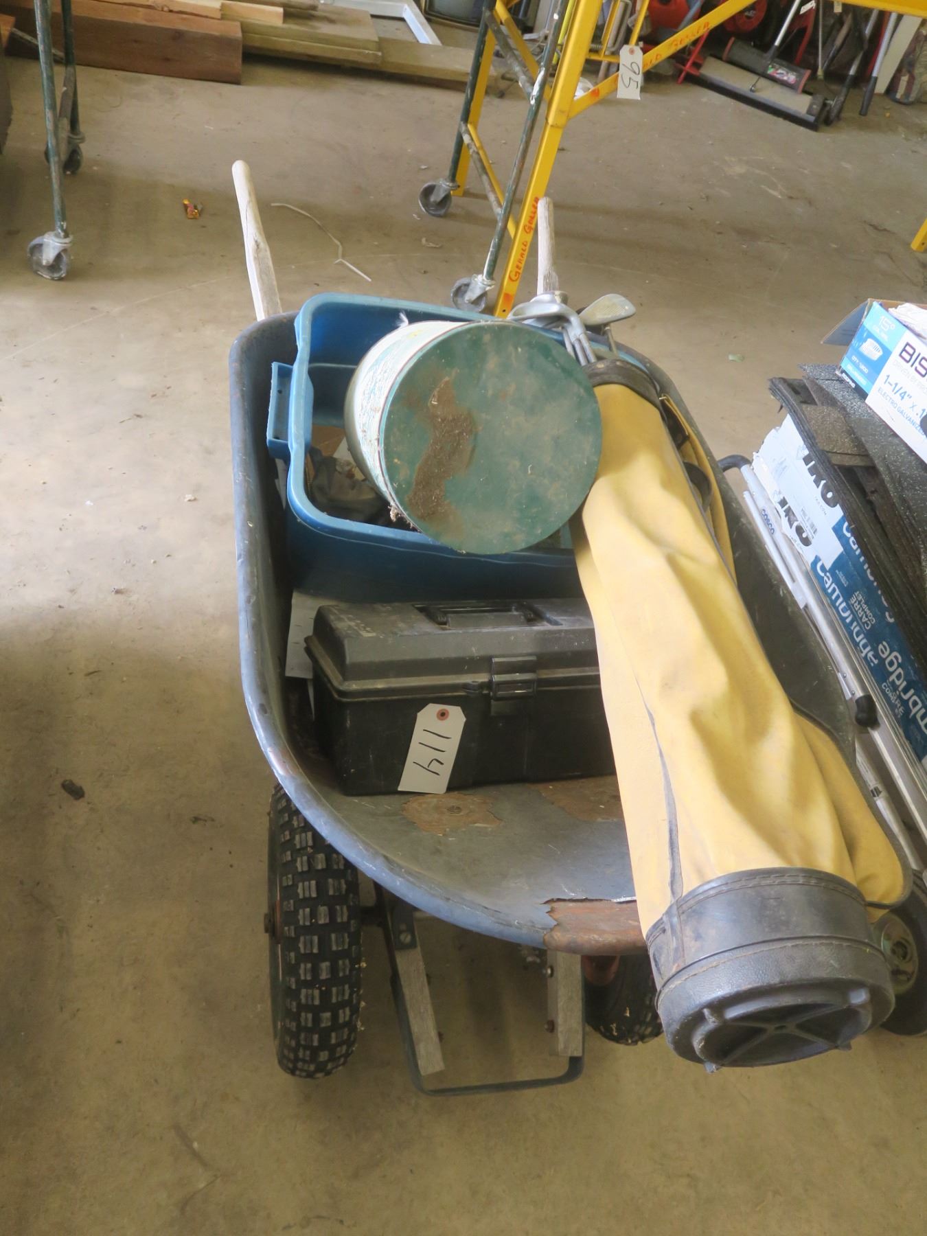Wheel Barrel with first aid kit, gulf clubs & etc.