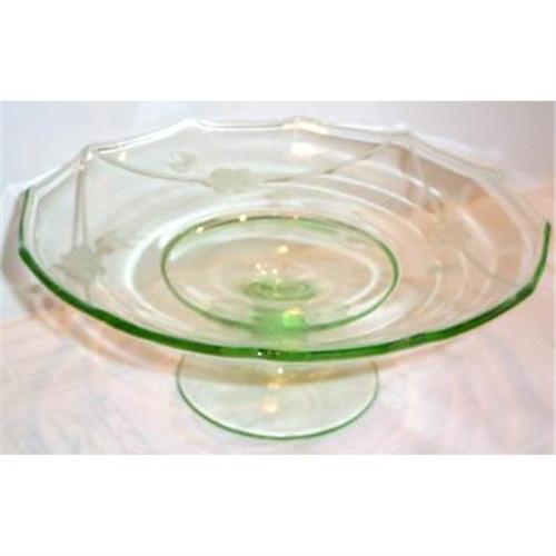 This lovely Green Depression Glass Wheel Cut Large Footed Compote is in SUPERIOR condition with no chips, cracks or dings. It is wheel cut with a lovely floral pattern and the compote measures 10" in diameter and stands a stately 4" tall.
