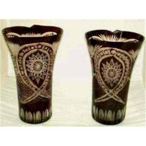 <tr><td>Title:Wheel Etched Bohemian Ruby Red to Clear Matched</td></tr>