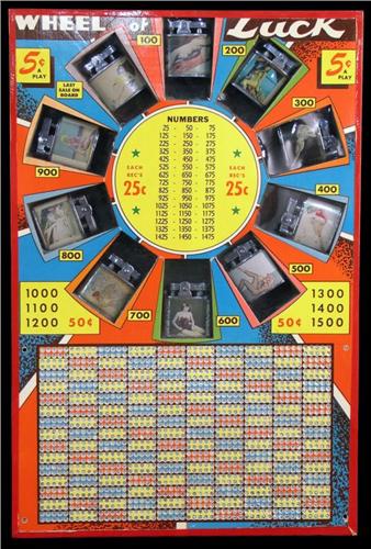 "Wheel of Fortune" nude prize punchboard prizes are nudie lighters