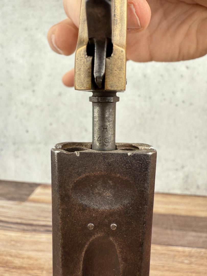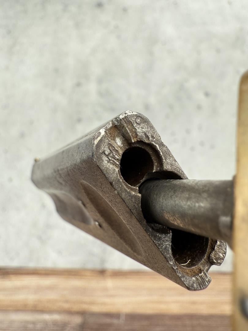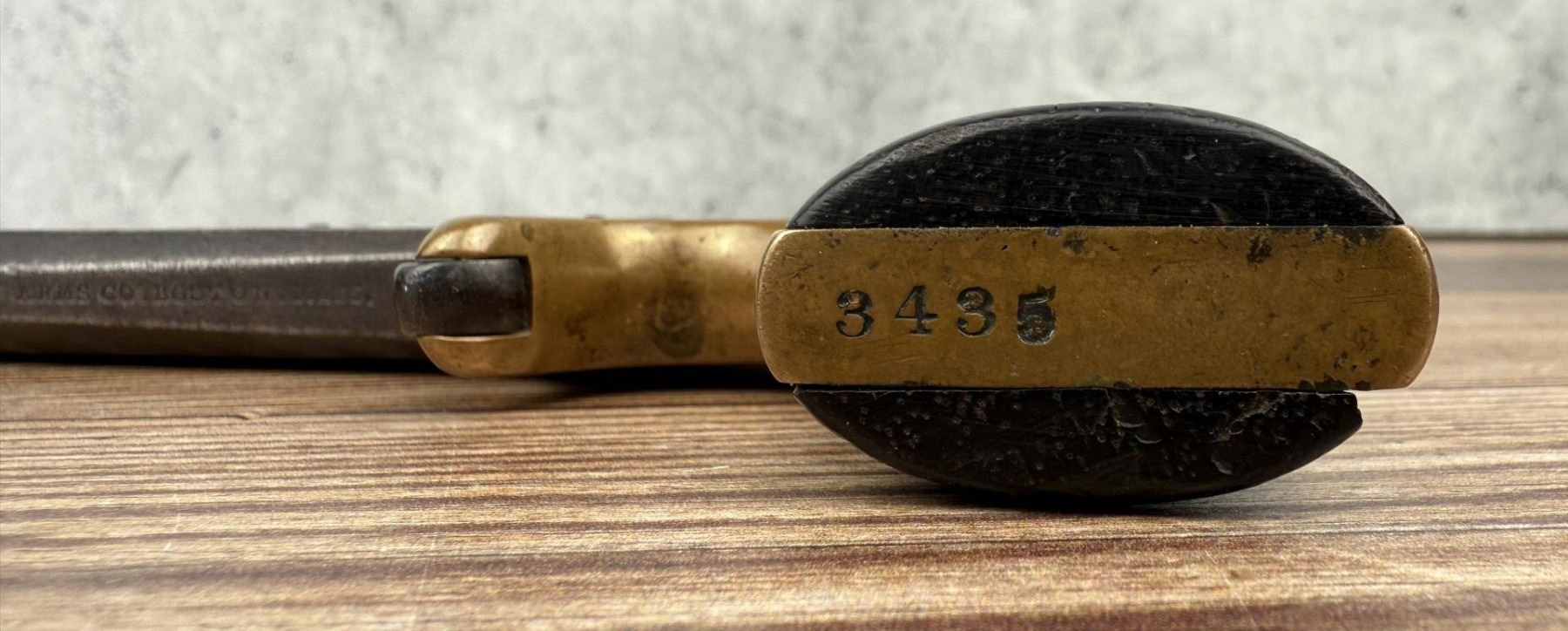 American Arms Over & Under Double Barrel Derringer. .22RF & .32RF. 2.875" barrels. SN: 3435. Brown patina to steel components with brass frame mounting varnished rosewood grips and German Silver front blade sights to both barrels. Hand indexed two-shot Derringer pistol with single action hammer and featuring fluted barrels. Marked in a single line over the .32 barrel AMERICAN ARMS CO. BOSTON. MASS, and over the .22 barrel WHEELER'S PAT. OCT. 31. 1865-JUNE, 19. 1866. Antique, does not require FFL transfer. International shipping not allowed.