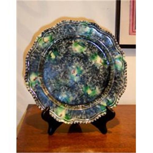 Fine Wheilden ware plate with gadrooned border, dual coloring-