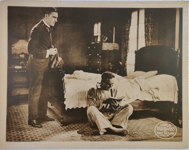 When the Clouds Roll By (Douglas Fairbanks, 1919) lobby card. Starring Douglas Fairbanks, Albert MacQuarrie, Kathleen Clifford, Frank Campeau, Ralph Lewis, Herbert Grimwood, Daisy Jefferson. Directed by Victor Fleming & Theodore Reed. Minor edge wear, minor creases, some tears. Very Fine. (11"x14").