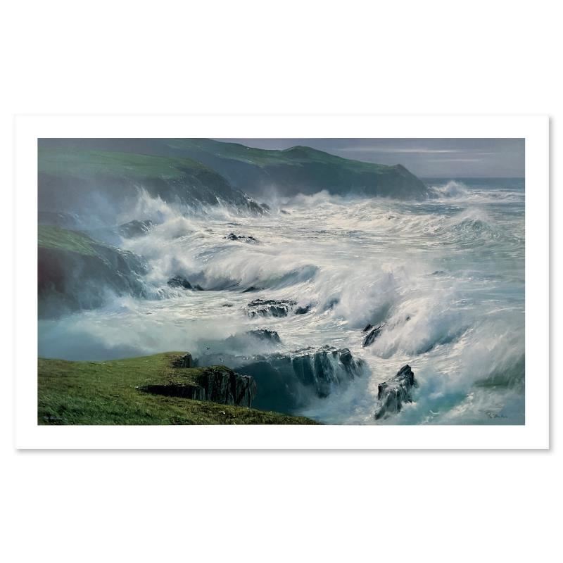Where Forces Meet by Peter Ellenshaw (1913-2007). "Where Forces Meet" is a limited edition lithograph on paper by Peter Ellenshaw (1913-2007), numbered and hand signed by the artist. Includes Letter of Authenticity. Measures approx. 35" x 22" (border), 32" x 19" (image). Please note: due to the very thin nature of this paper, there may be some minor creases and the paper may be slightly wavy.