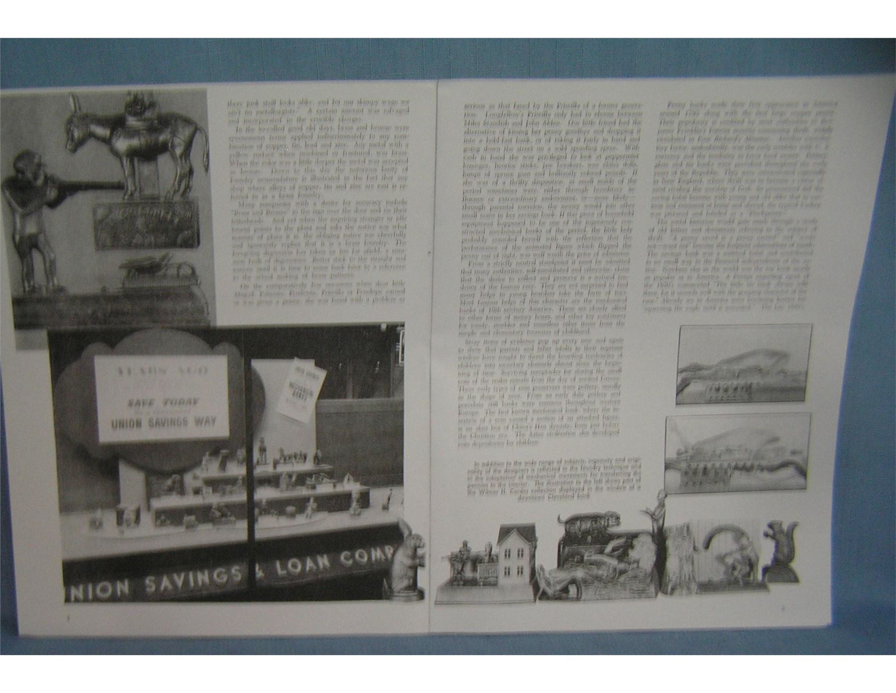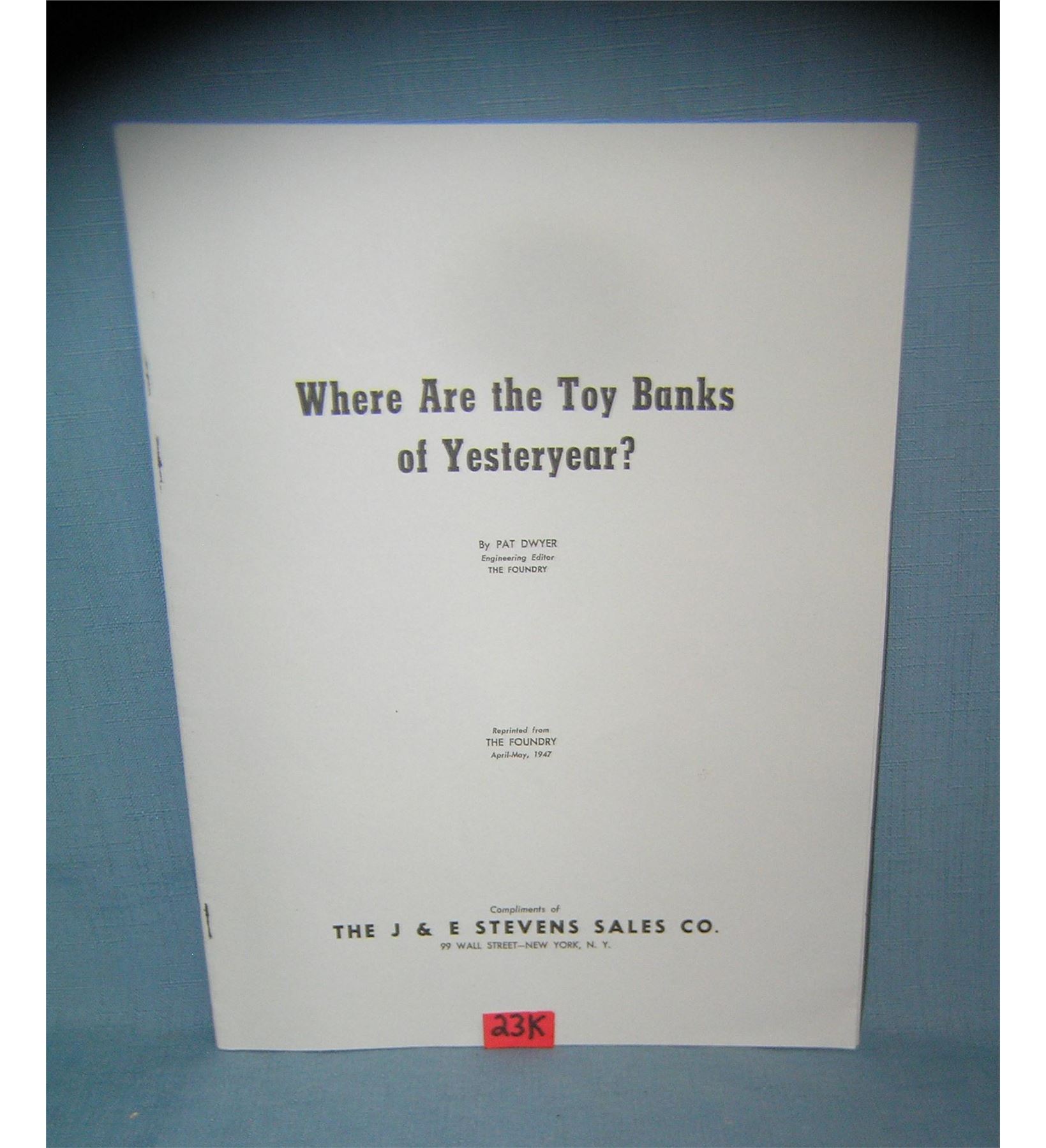 "Where are the Toy Banks of Yesteryear?" original bank booklet from the J&E Stevens Sales Co. of Cromwell CT dated 1947 a great pictural reference and history of mechanical banks and horse drawn toys est. value $30.00-$35.00