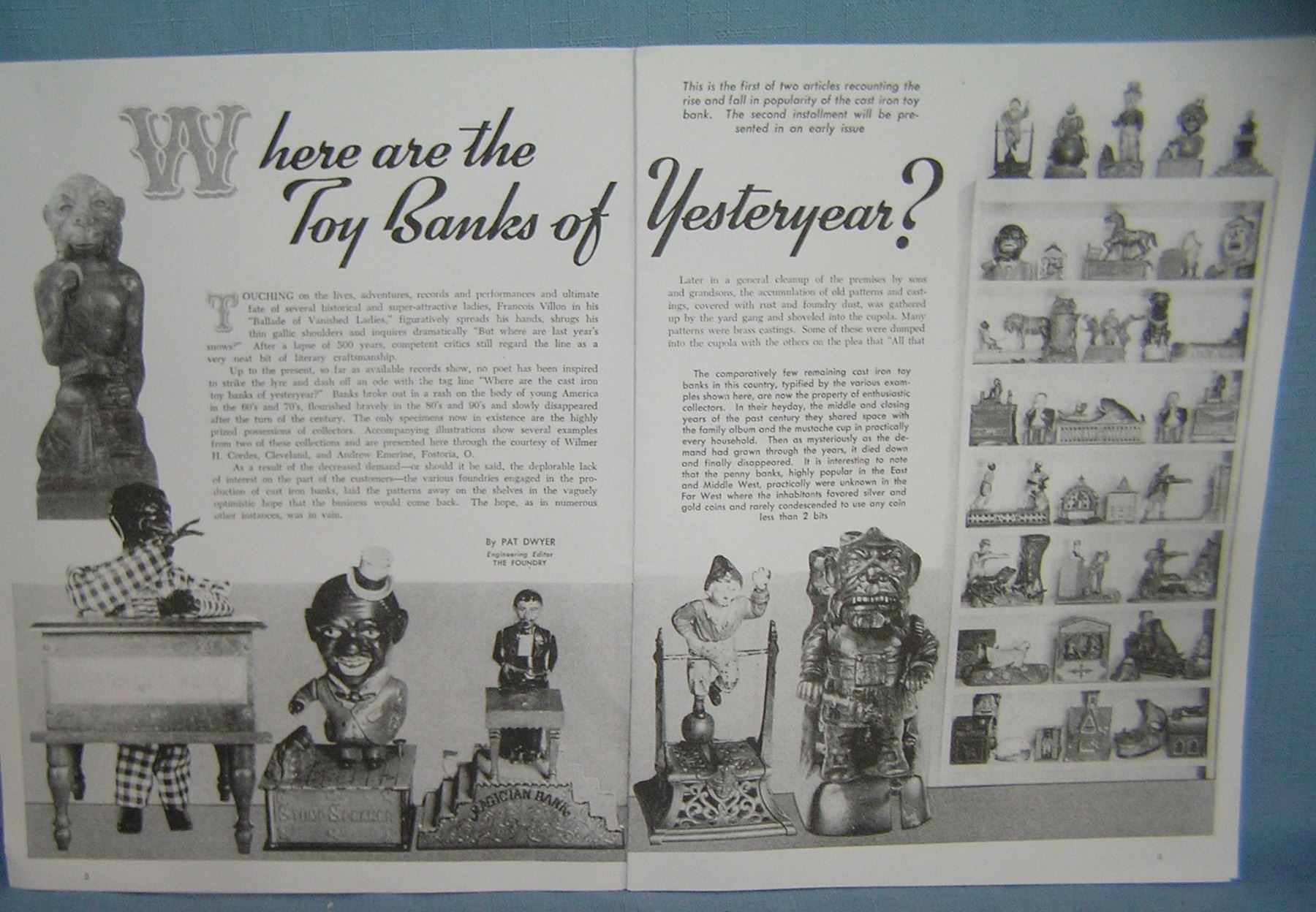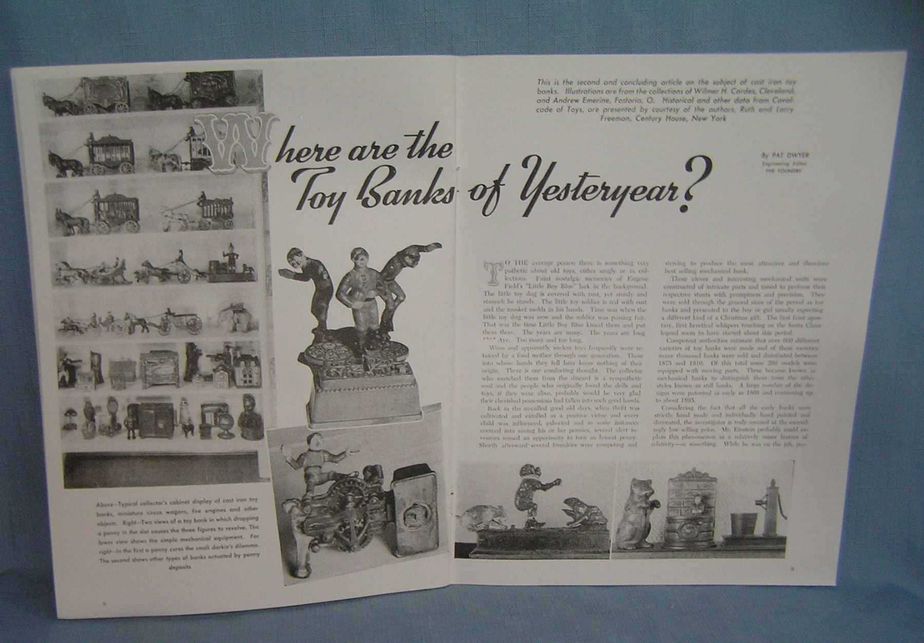 "Where are the Toy Banks of Yesteryear?" original bank booklet from the J&E Stevens Sales Co. of Cromwell CT dated 1947 a great pictural reference and history of mechanical banks and horse drawn toys est. value $30.00-$35.00