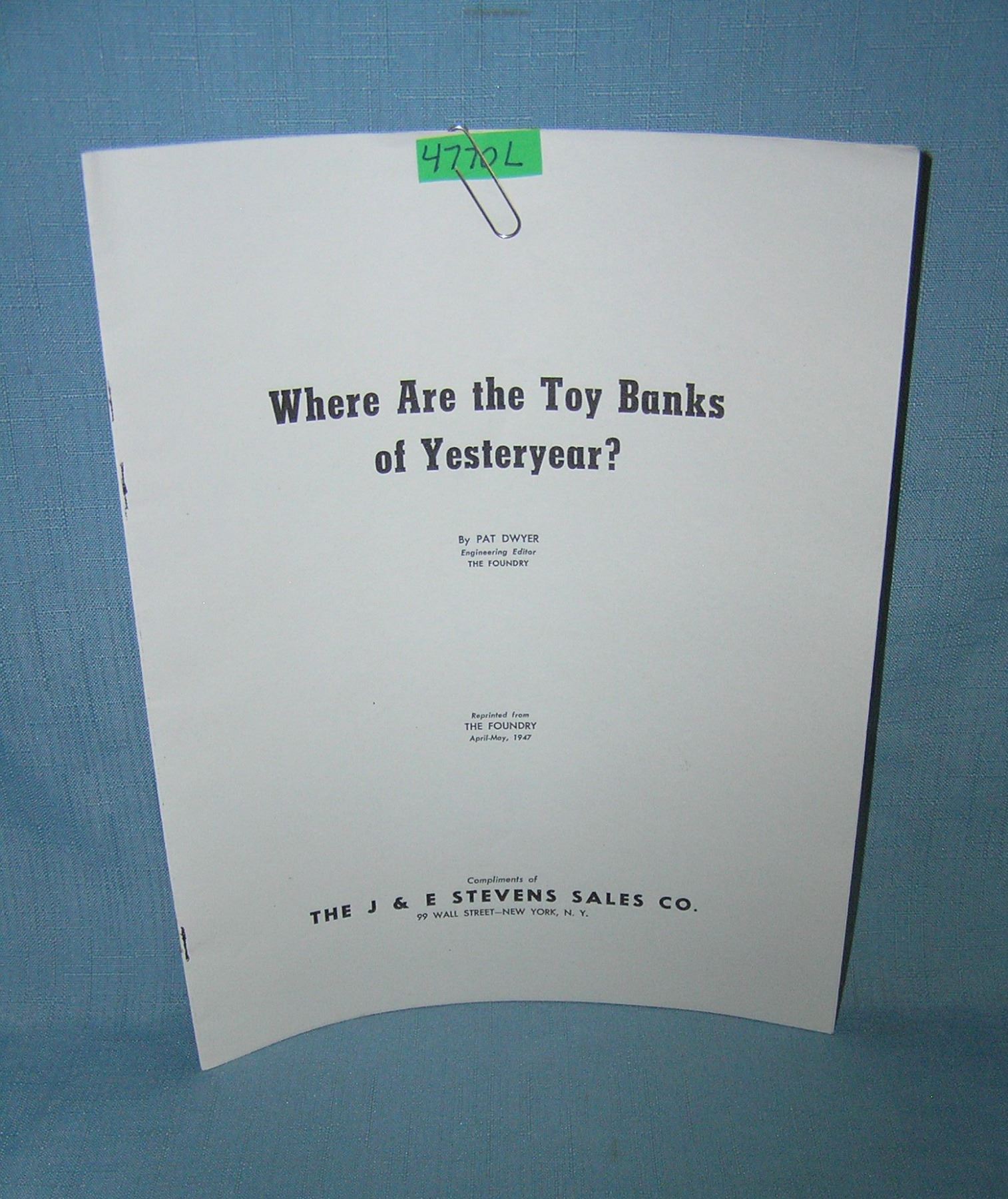 "Where are the toy banks of yesteryear?" J&E Stevens sales catalog est. value $35.00-$40.00