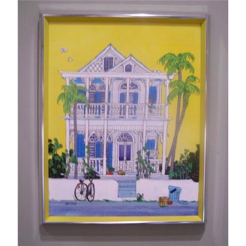 Offered here is an acrylic painting by famed Key West artist, Ann Irvine. It is one of the historic Victorian homes that Key West is famous for. The colors are bright and the style of painting is as charming as Key West itself. It is in excellent condition, framed in a metal frame, and measures 16" by 20". Some information about Ann: "A serious artist with a playful eye. Ann Irvine paints the smile she sees in buildings, boats, birds, and the charm of old Key West. Her paintings are often described as happy as she combines watercolor, acrylics and line drawing to translate her whimsical visions to paper or canvas. Mainland China, Hong Kong, Haiti, San Francisco and New England are some of Ann's inspirations. Travel is as much a part of her lifestyle as is her love of architecture. Having painted for 30 years, she has operated her own studio/gallery for the past 20 years in Key West. Irvine's work is in a permanent display of Historic Architecture of Florida, private collections, and numerous galleries."