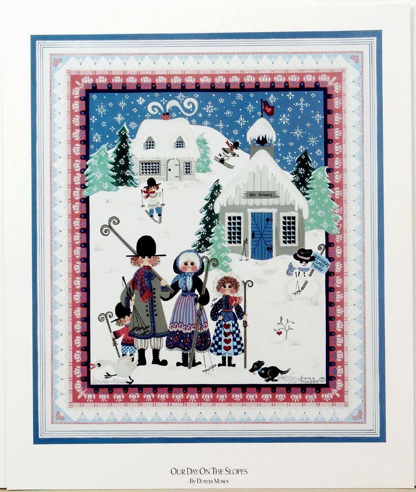 This is a vintage signed and numbered folk art print by Donna Moses titled "Our Day on The Slopes." SIZE: Approx. 14" x 16 1/2".