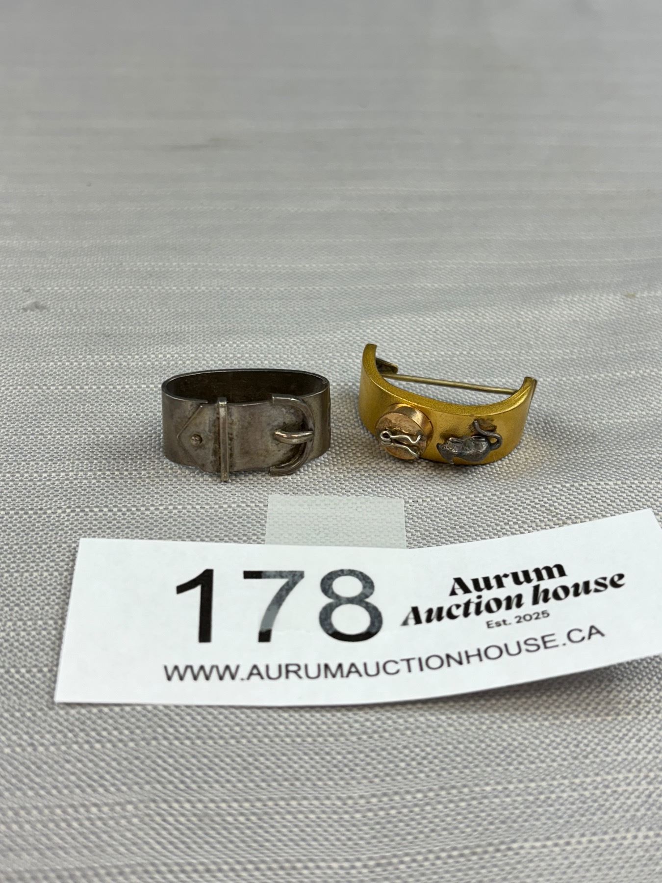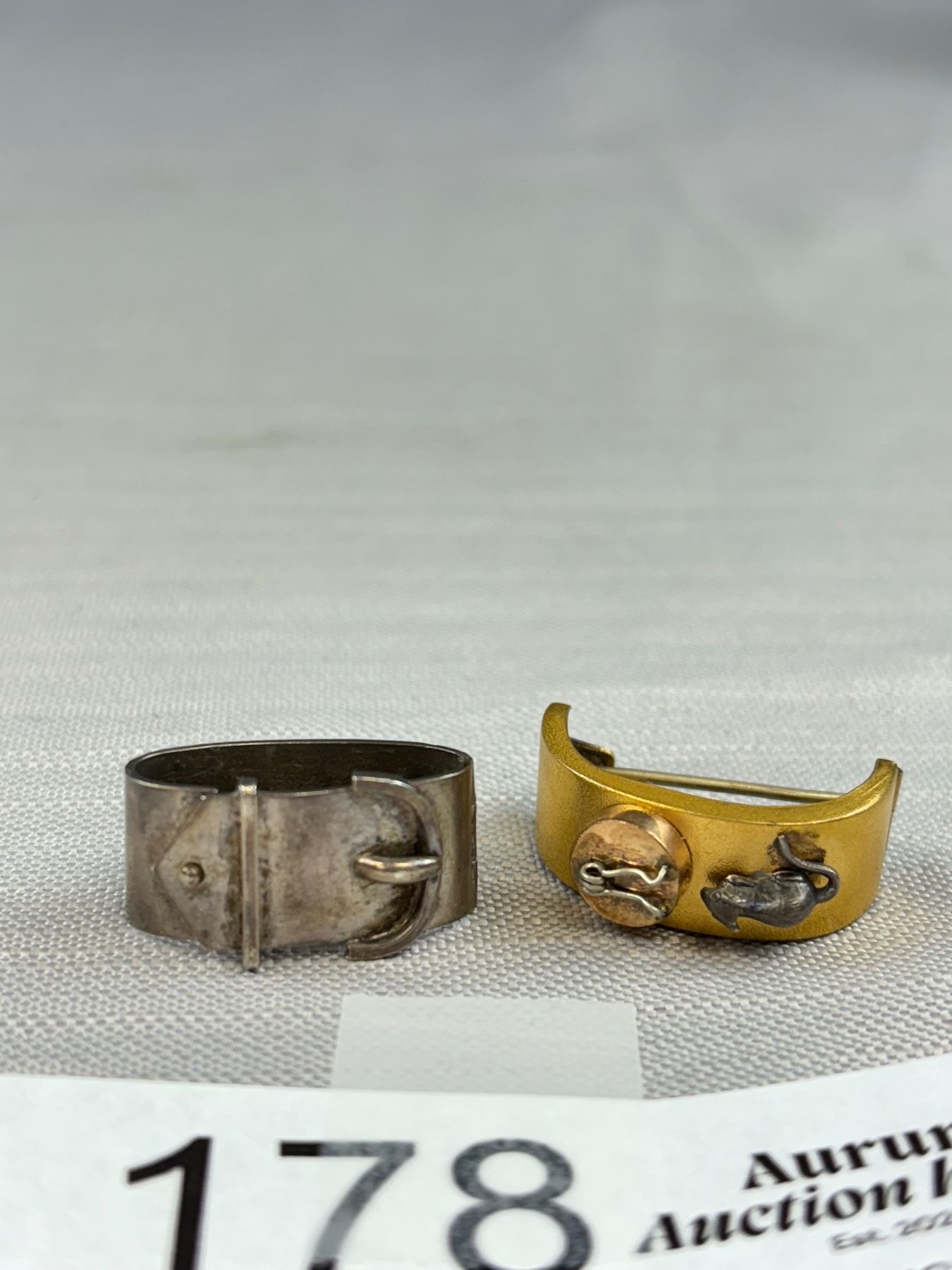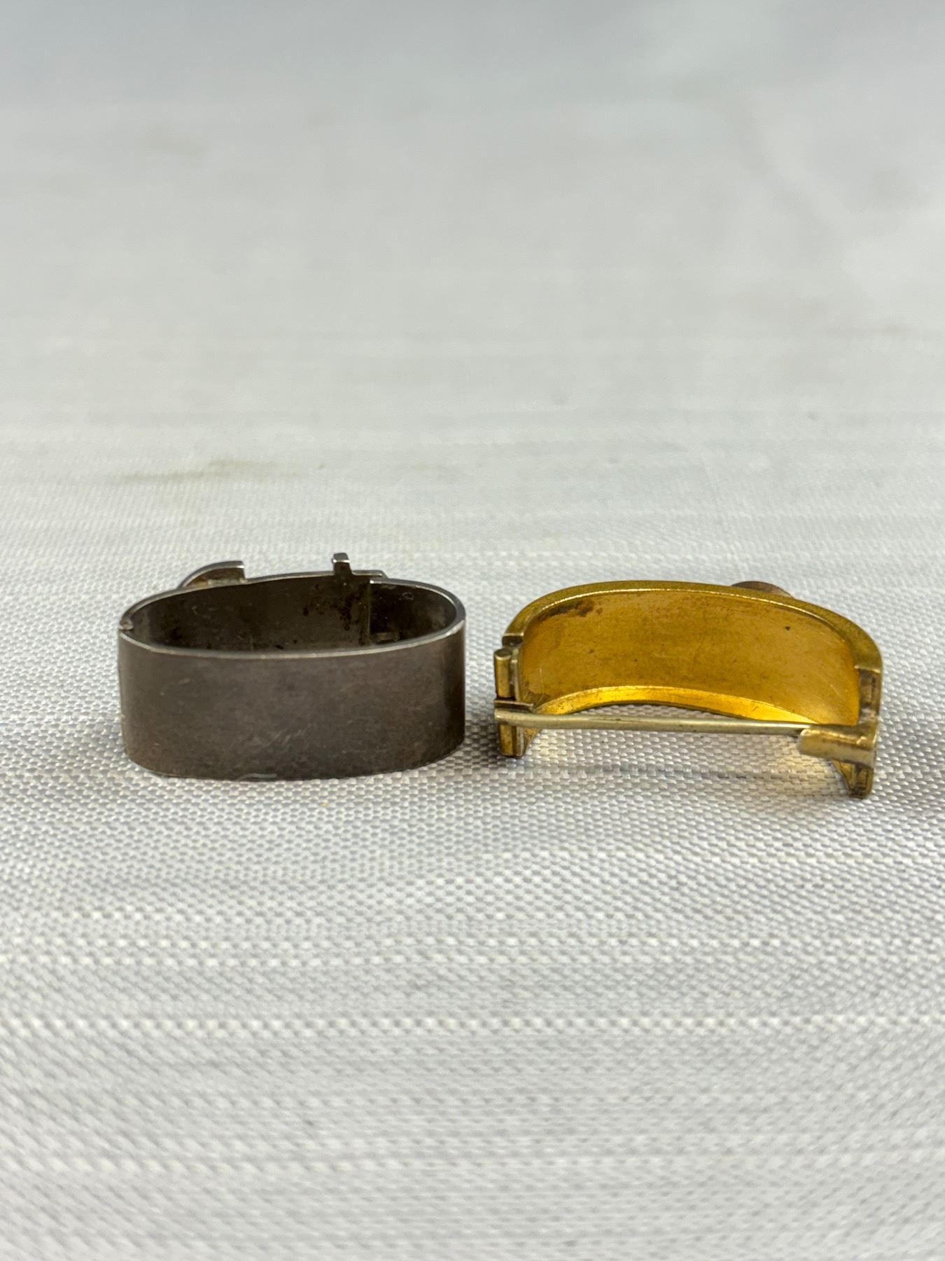 Whimsical Victorian Mouse and Trap Gentlemans Scarf Pin and Silver Buckle Scarf Clip