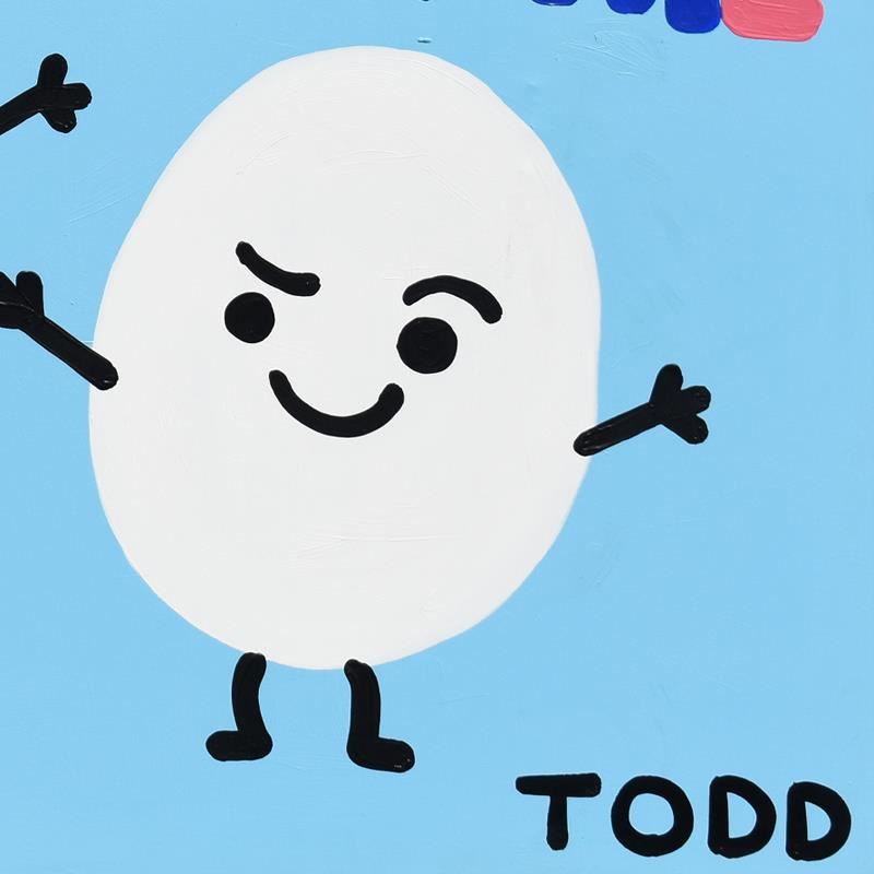 "Whip Me, Beat Me" is an original acrylic painting on gallery wrapped canvas by Todd Goldman, hand signed by the artist. Includes Letter of Authenticity. Measures approx. 60" x 48" (image). Due to the way this piece was stored there may be minor wear or signs of age (such as wear on the corners) but the piece is in overall good condition.