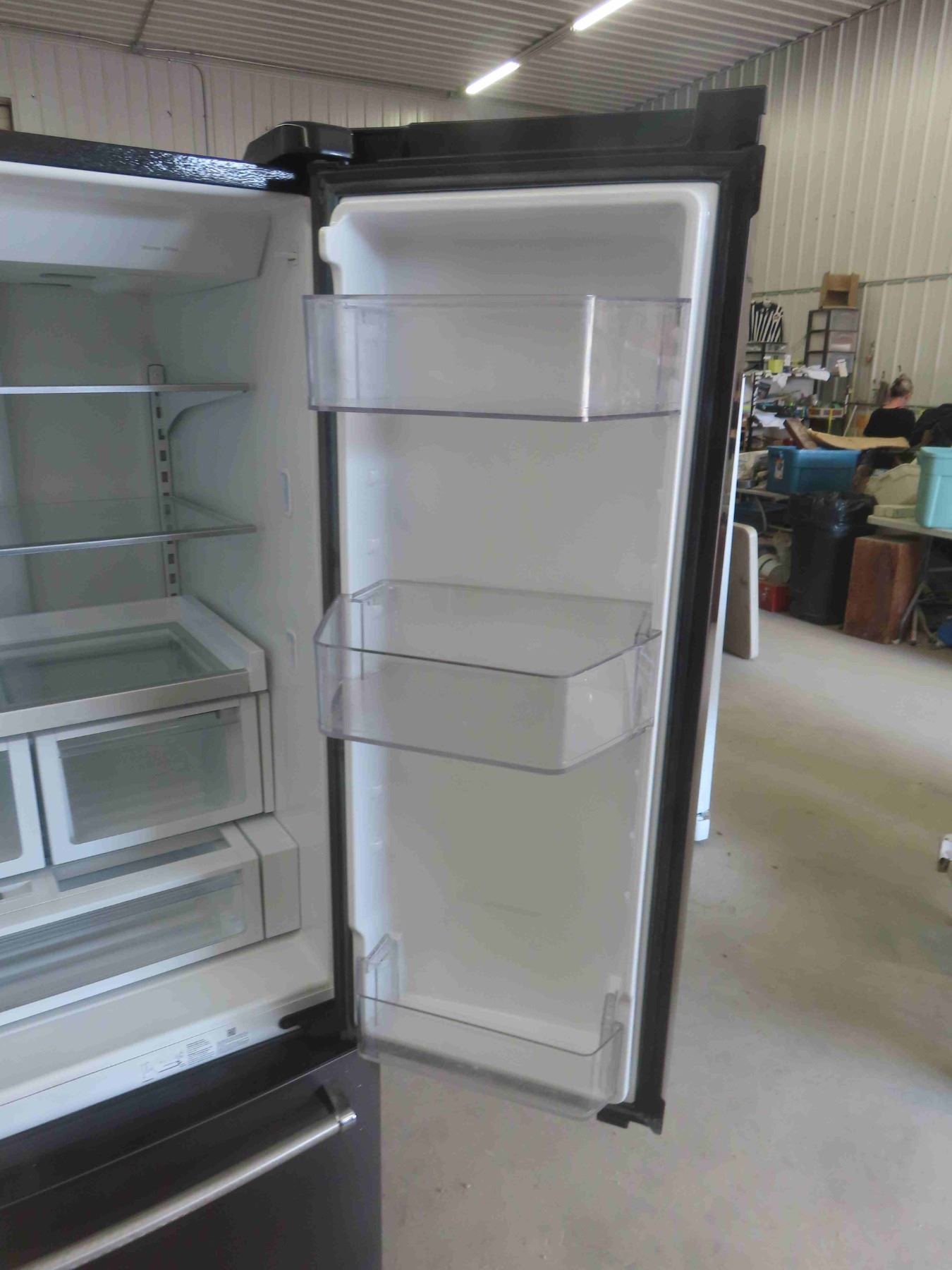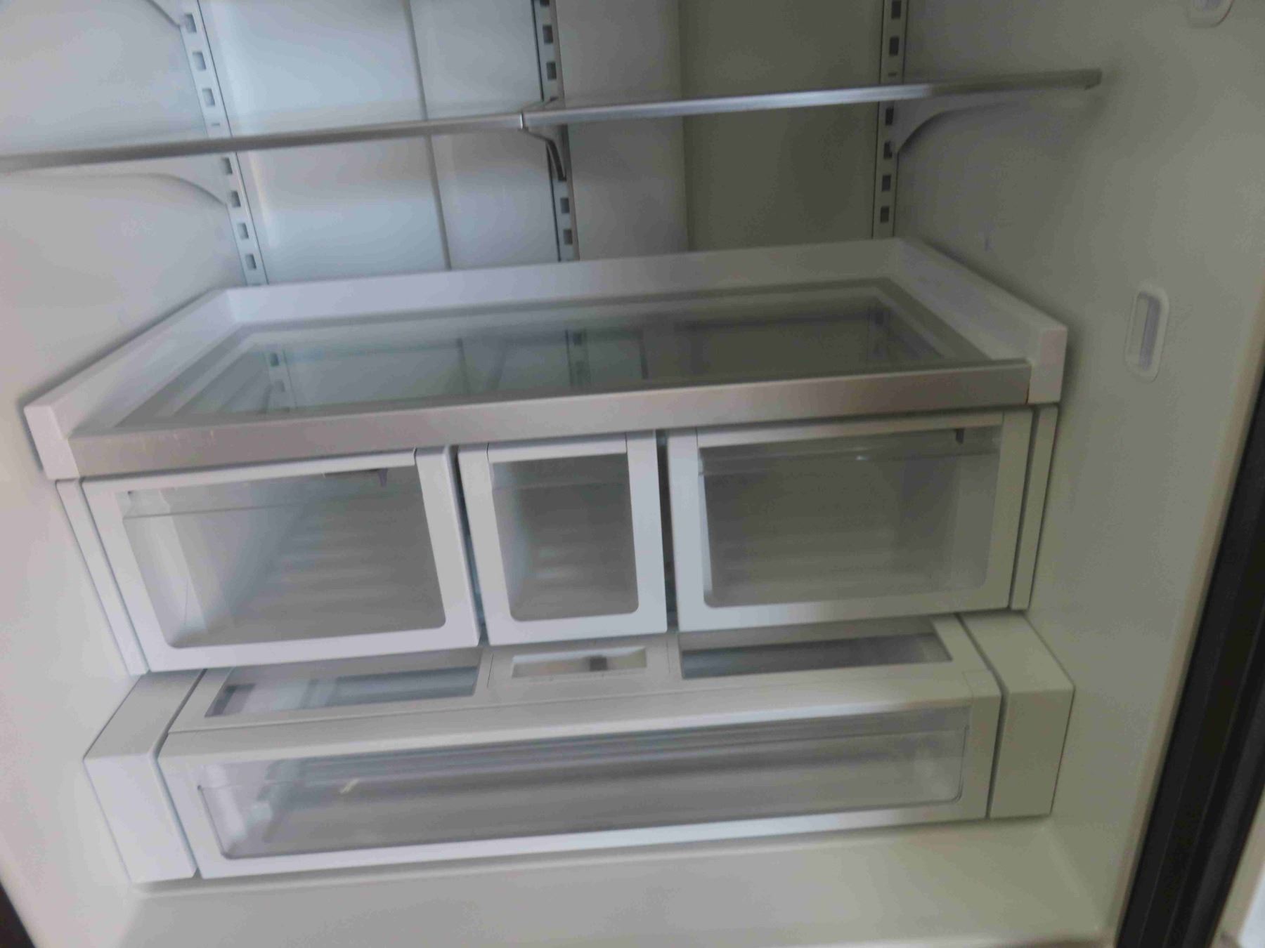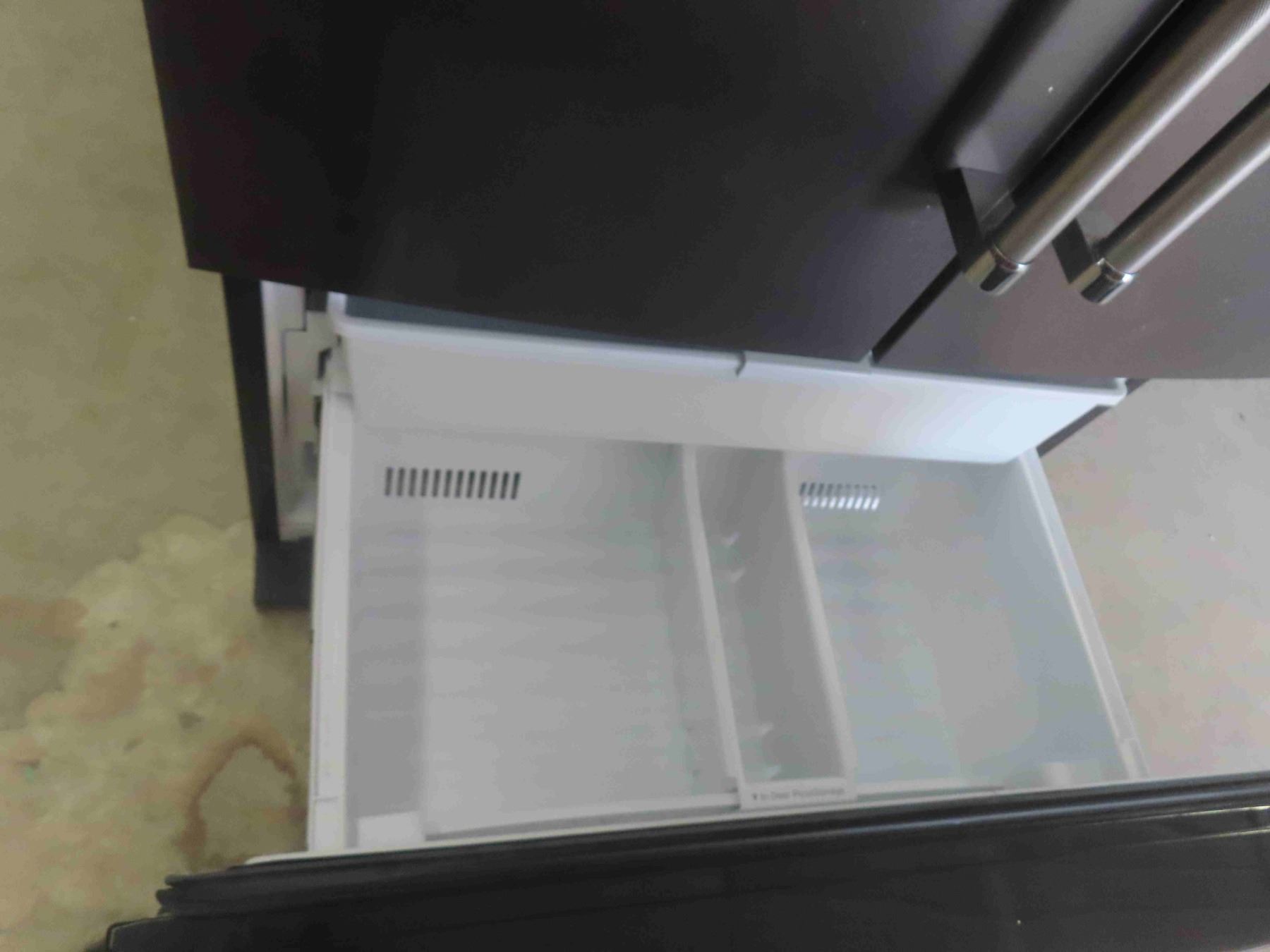 Whirlpool Side by Side Fridge with Bottom Freezer 70'' x 36'' x 32'' - Appears New or Like-New , Some Damage. One Dent on Side, Surface Scratch on Front (See Photos)