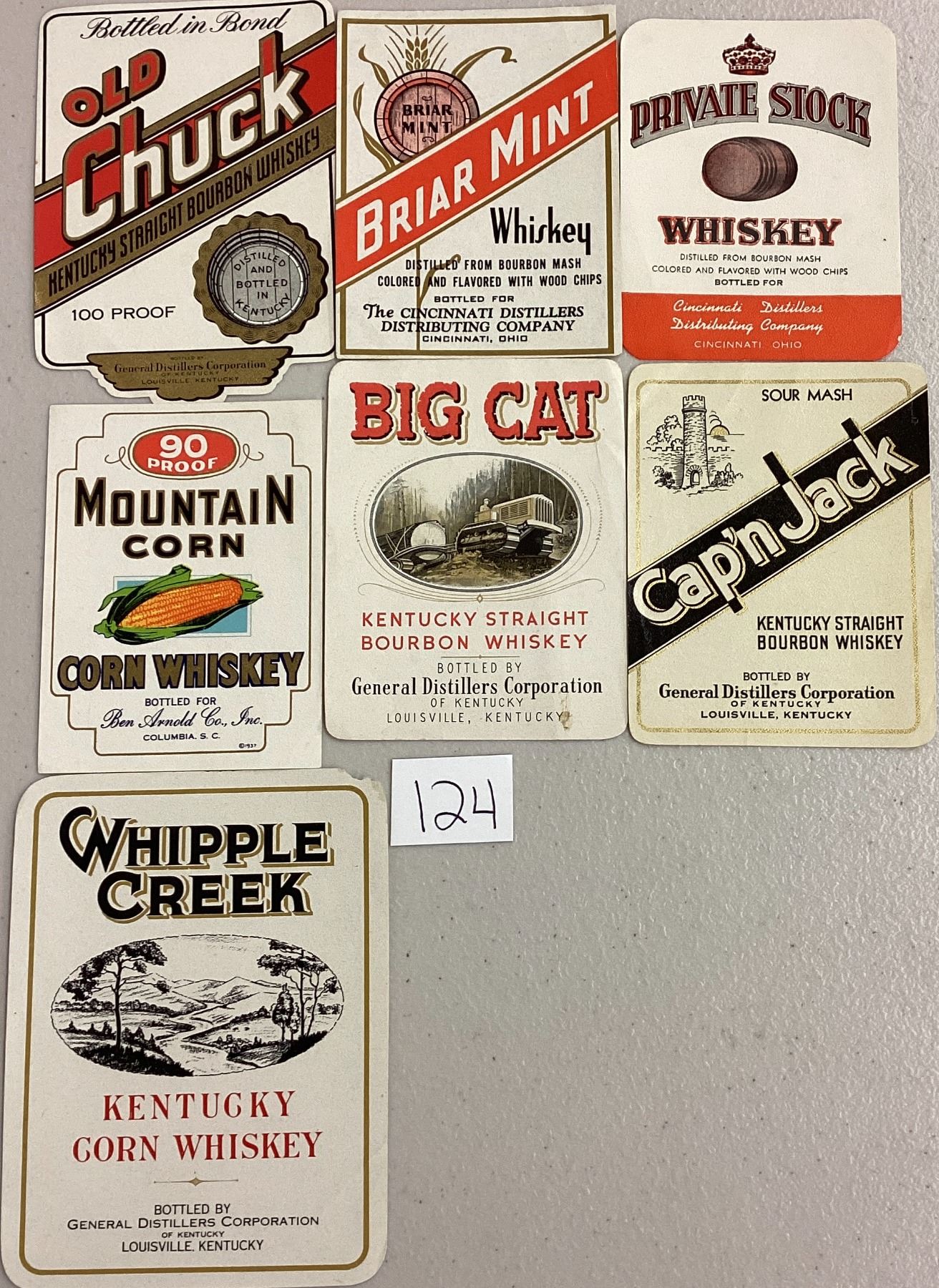 11 vintage Whiskey labels.