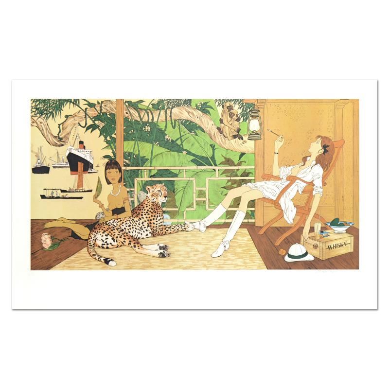 "Whisky Leopard" is a limited edition lithograph on paper by Phillippe Noyer (1917-1985), numbered and hand signed by the artist. Includes Letter of Authenticity. Measures approx. 37.5" x 22.5" (border), 33.5" x 17" (image).