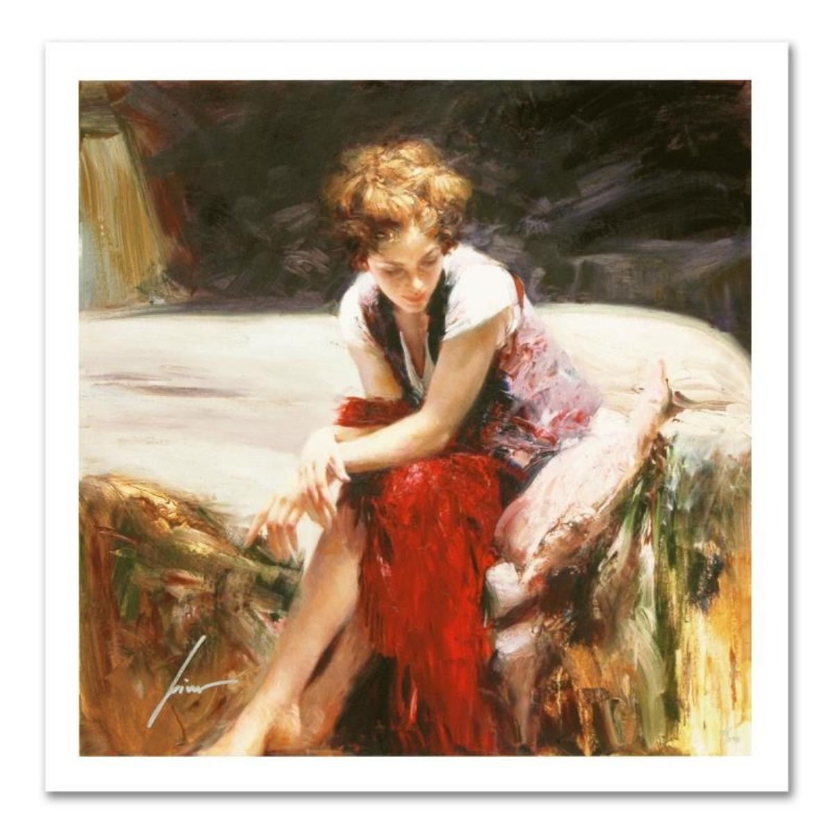 Whispering Heart by Pino (1939-2010). "Whispering Heart" is a limited edition giclee on paper by Pino (1939-2010). The piece comes numbered and is hand signed by the artist. Includes Certificate of Authenticity. Measures approxiamtely 16 x 16" (image).