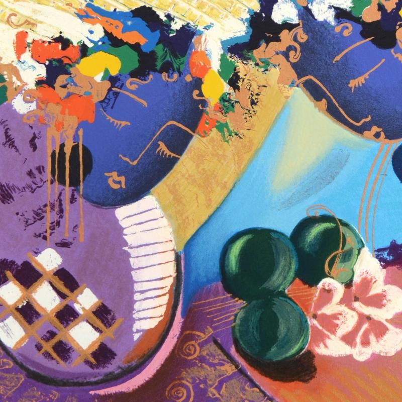 "Whispers II" is a limited edition serigraph on paper by Lee White (1948-2004), numbered and hand signed by the artist! Measures approx. 21" x 21" (with border), 15" x 15" (image).