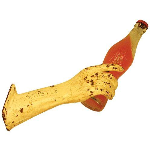 Cast Iron Whistle Bracket Sign with whistle soda bottle. Good original condition. 14 inches long.