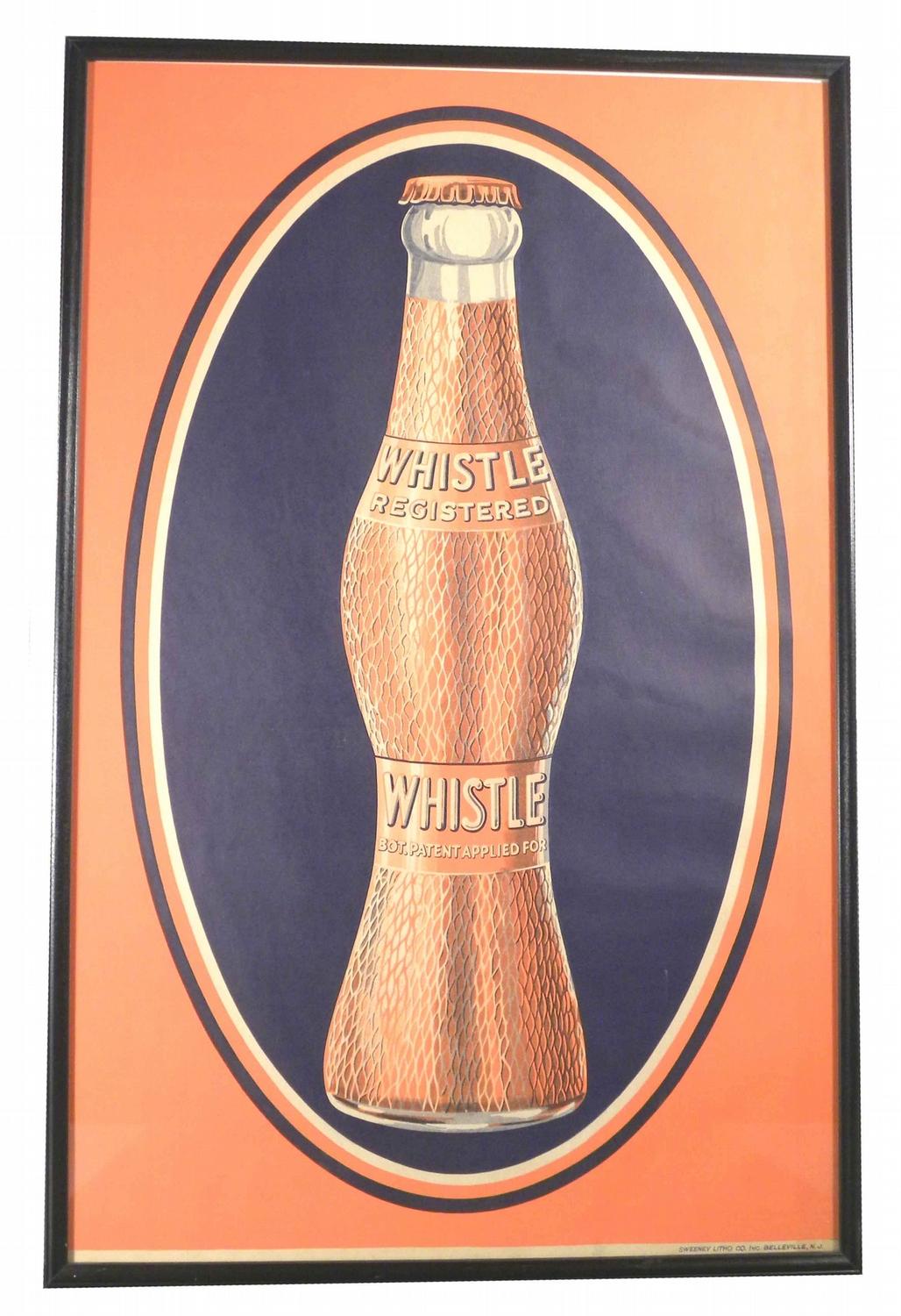Whistle Soda Paper Poster. Sweeney Litho Company, Belleville, NJ. Framed under glass. Mint condition. 18 X 27 1/2 image only.