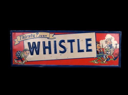 Whistle Tin Embossed Sign 18 x 54 Very Good Condition Rare