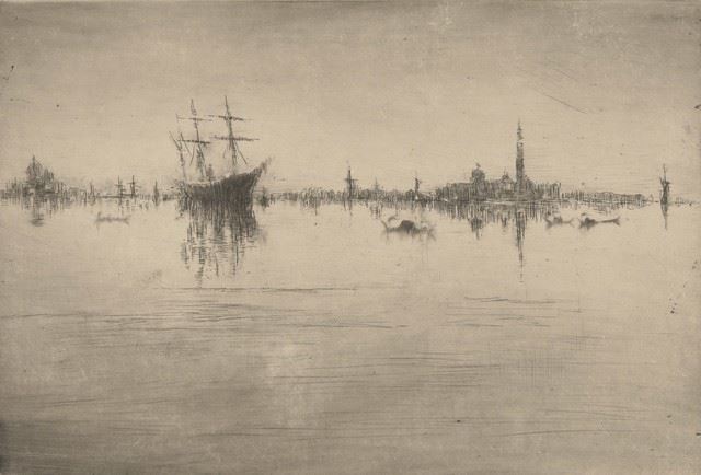 Artist: James Abbott McNeill Whistler   - Title: Nocturne - Medium: Fine Art Giclee on Canvas - Image Size: Approximately 13.5 inches x 20 inches - Framed: Unframed on Unstretched Canvas - Biography:  James McNeill Whistler, in full James Abbott McNeill Whistler, (born July 11, 1834, Lowell, Massachusetts, U.S.--died July 17, 1903, London, England), American-born artist noted for his paintings of nocturnal London, for his striking and stylistically advanced full-length portraits, and for his brilliant etchings and lithographs. An articulate theorist about art, he did much to introduce modern French painting into England. His most famous work is Arrangement in Grey and Black No. 1 (1871; also called Portrait of the Artist's Mother or Whistler's Mother).