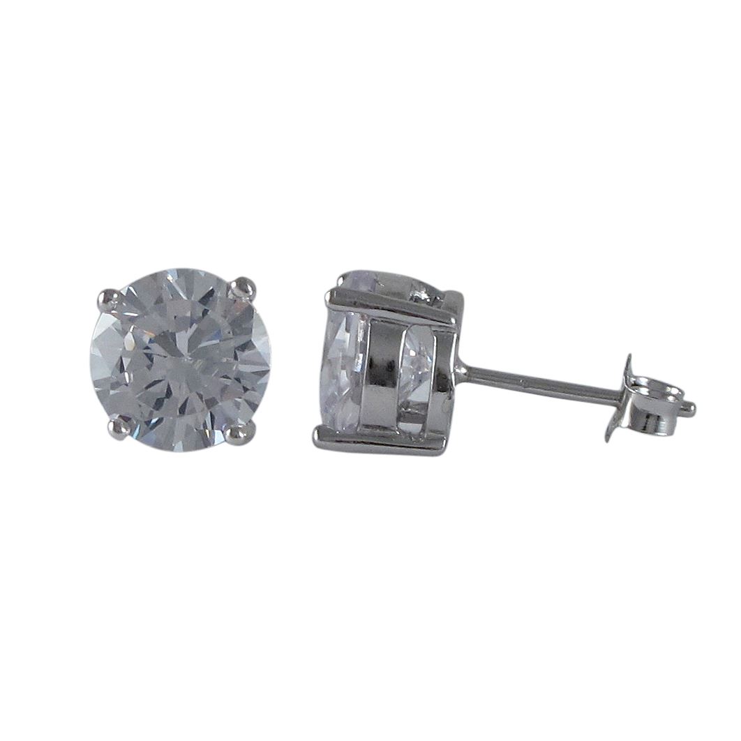 White 8Mm Round CZ, Sterling Silver Post Stud Earrings