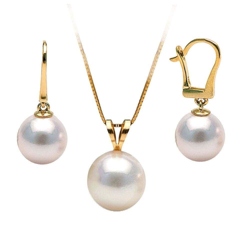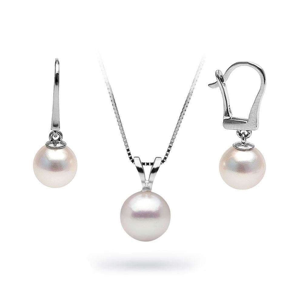 White Akoya Pearl Solitaire Pendant and Dangle Earring Set